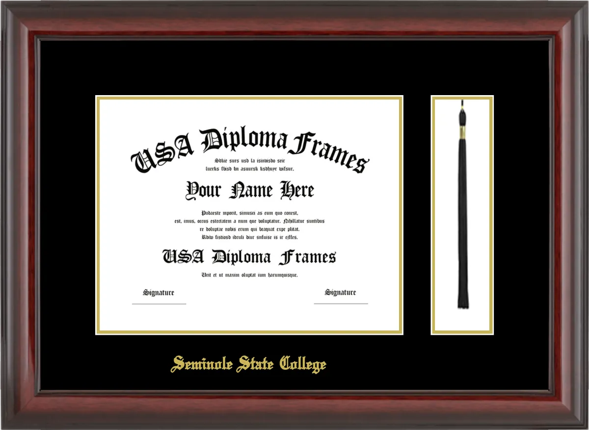 Seminole State College Diploma Frame with Tassel – Cherry Mahogany Glossy – Black and Gold Mat