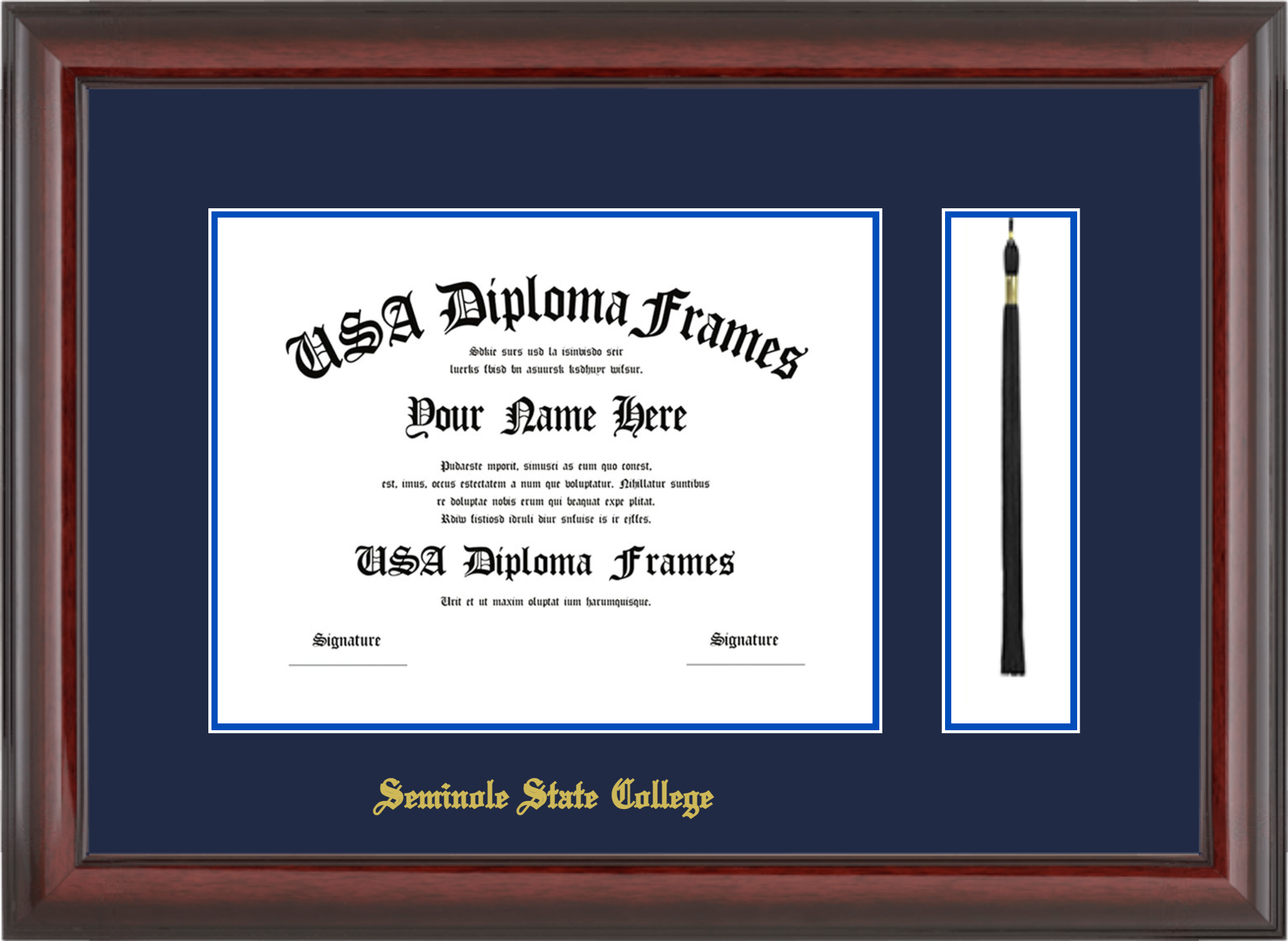 Seminole State College Diploma Frame with Tassel – Cherry Mahogany Glossy – Navy and Royal Blue Mat