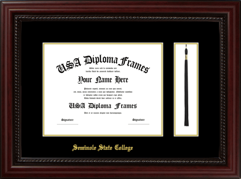 Seminole State College Diploma Frame with Tassel – Executive Cherry Rope – Black and Gold Mat