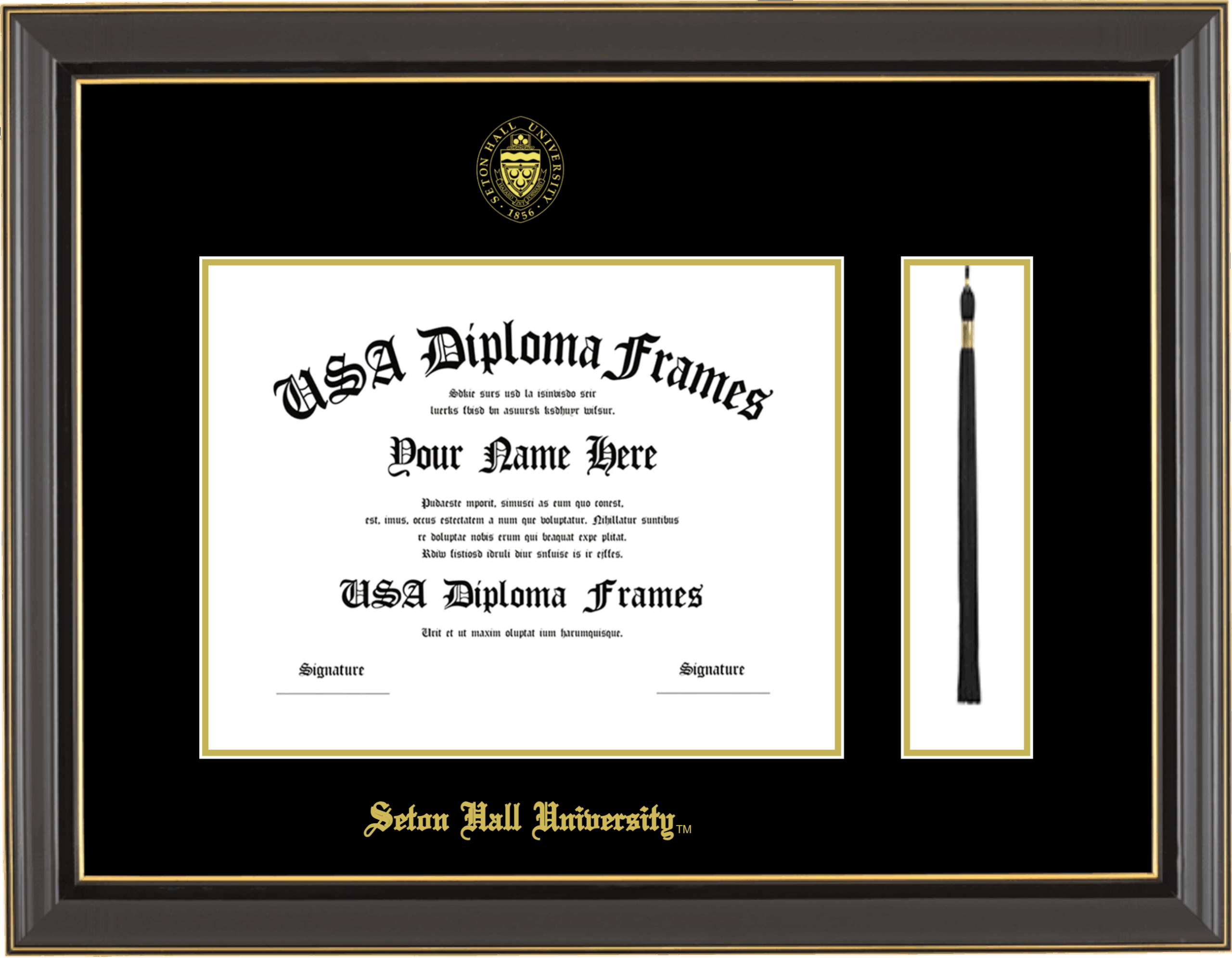 Seton Hall University Diploma Frame with Tassel – Black Gold Trim Glossy – Black and Gold Mat