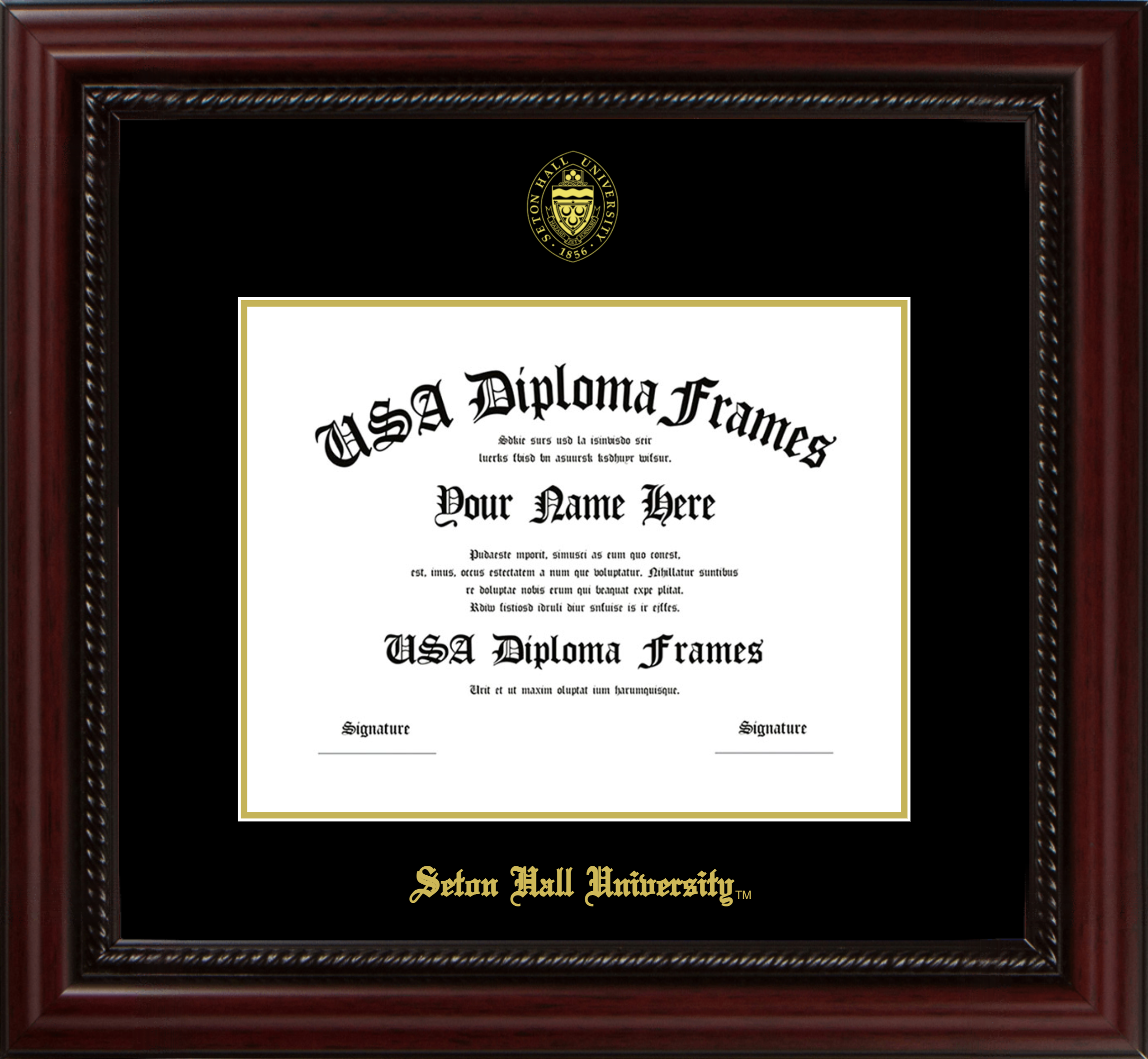 Seton Hall University Diploma Frame – Executive Cherry Rope – Black and Gold Mat