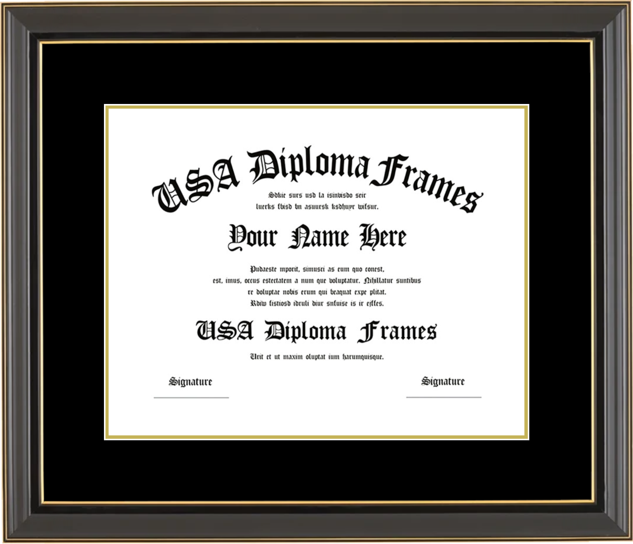 Diploma Frame – Black Gold Trim Glossy – Black and Gold Mat – 11 x 14 Diploma