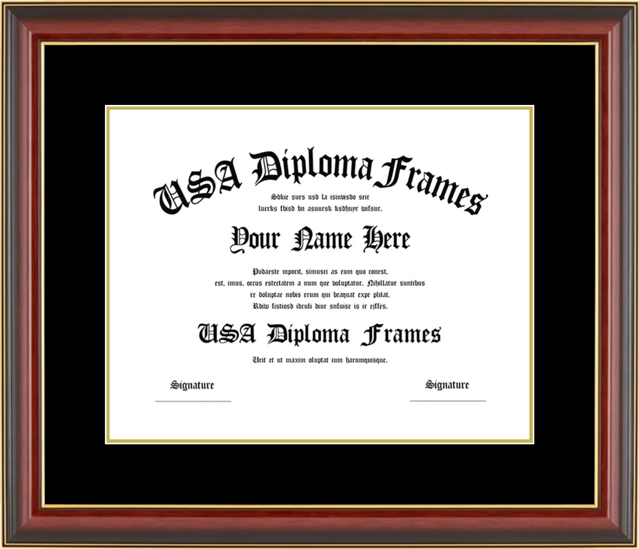 Why choose USA Diploma Frames? Our diploma and certificate frames are custom-built in the USA using hard & solid wood mouldings, acid-free mats, and UV-protective glass. Every detail is designed to protect your document while enhancing its presentation.