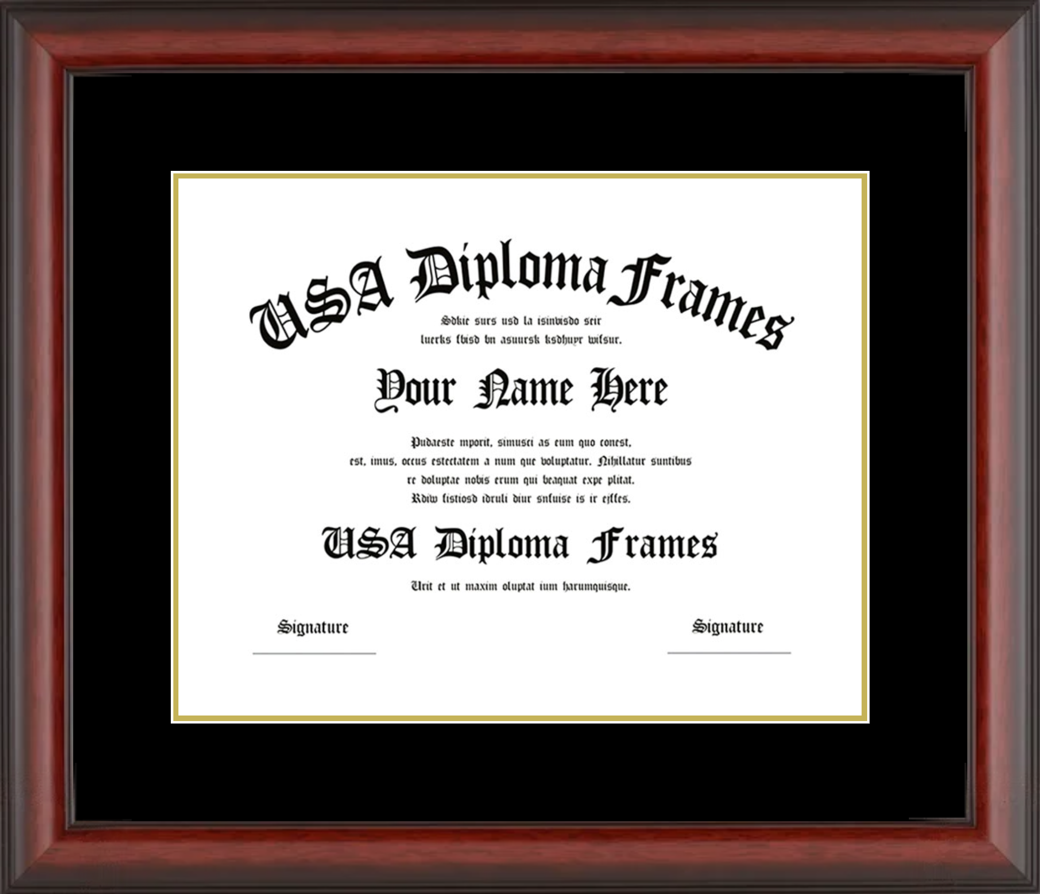 Diploma Frame – Cherry Mahogany Matte – Black and Gold Mat – 11 x 14 Diploma