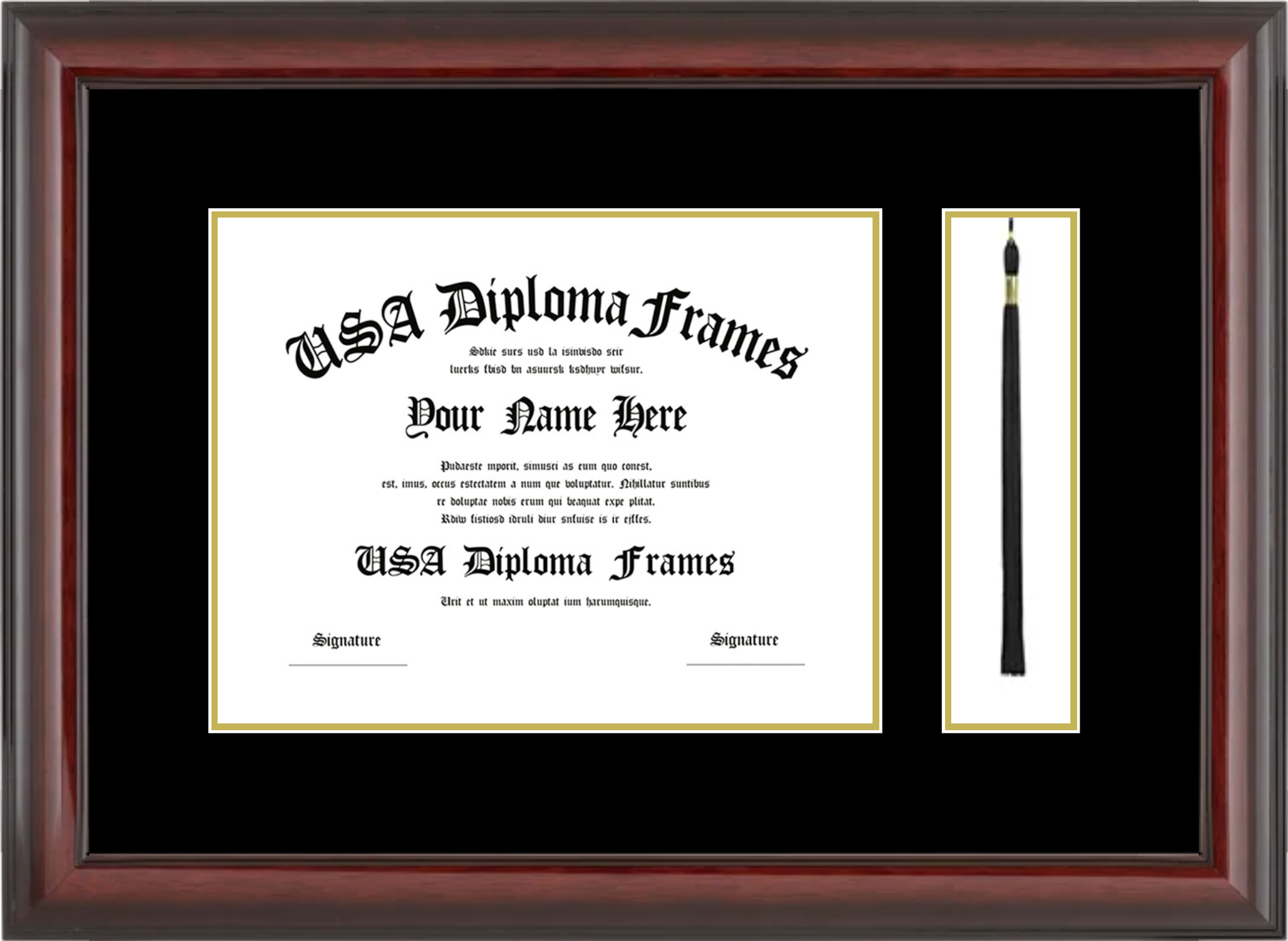 Diploma Frame with Tassel – Cherry Mahogany Glossy – Black and Gold Mat – 8.5 x 11 Diploma