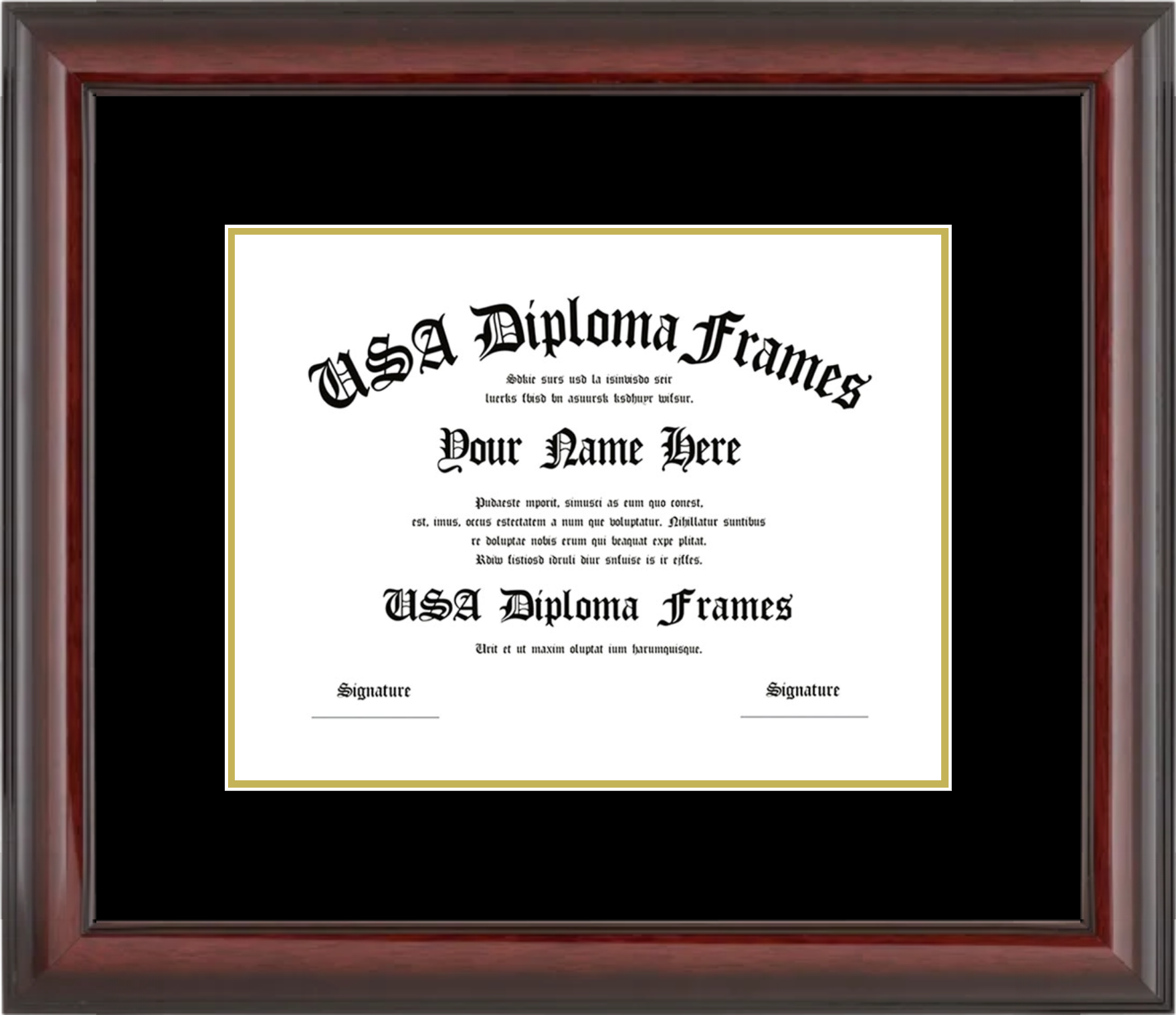 Single Diploma Frame – Cherry Mahogany Glossy – Black Mat – Gold Accent Mat – 8.5 x 11