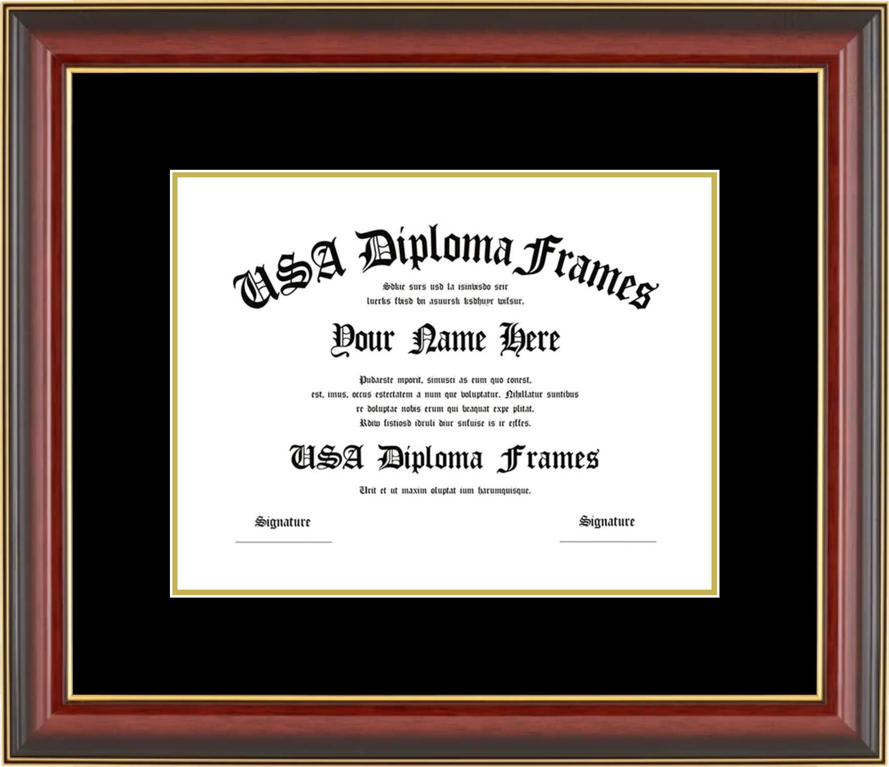 Single Diploma Frame – Cherry Mahogany Gold Trim Glossy – Black Mat – Gold Accent Mat – 8.5 x 11