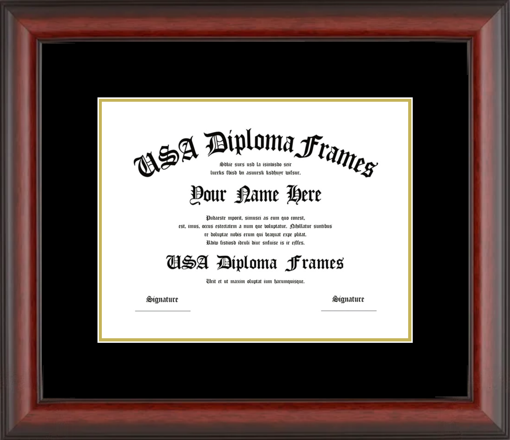 Why choose USA Diploma Frames? Our diploma and certificate frames are custom-built in the USA using hard & solid wood mouldings, acid-free mats, and UV-protective glass. Every detail is designed to protect your document while enhancing its presentation.