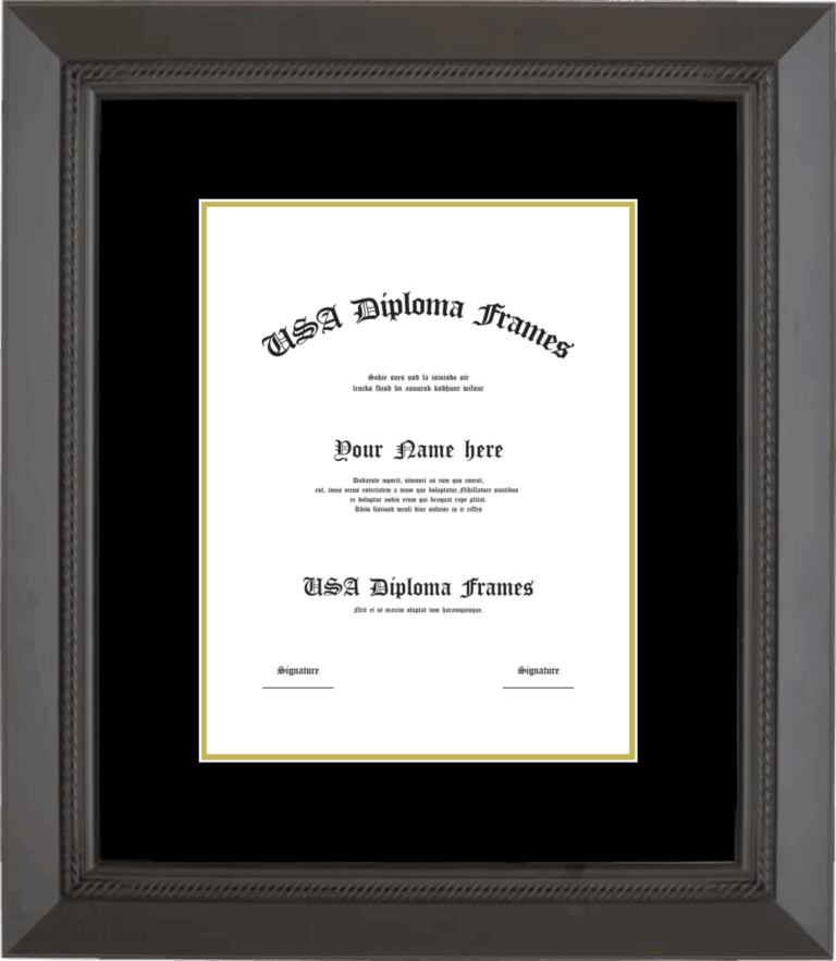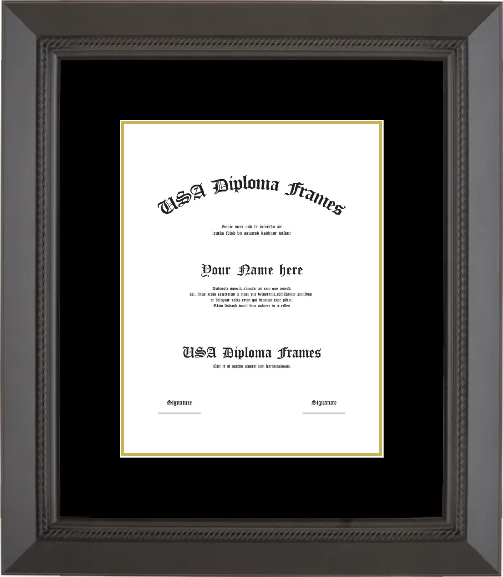 Vertical Diploma Frame – Black Rope – Black and Gold Mat – 11 x 8.5 Diploma