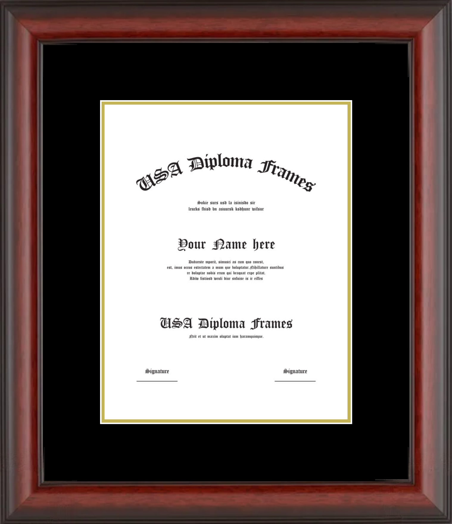 Why choose USA Diploma Frames? Our diploma and certificate frames are custom-built in the USA using hard & solid wood mouldings, acid-free mats, and UV-protective glass. Every detail is designed to protect your document while enhancing its presentation.