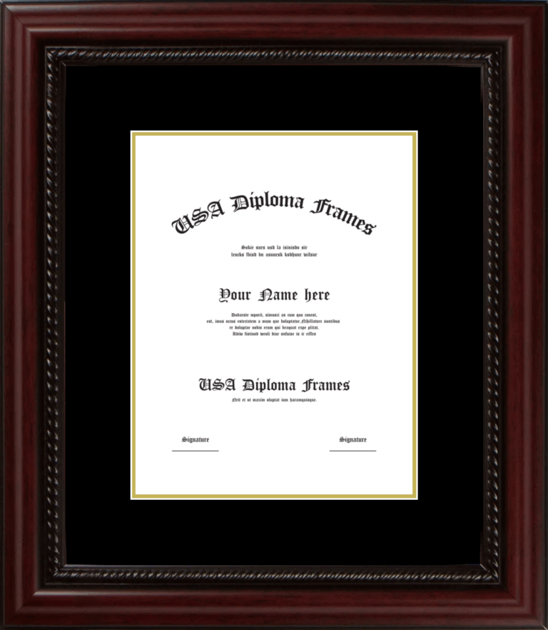 College diploma frames deserve a place on your wall! Custom build your university degree frame today. We offer a variety of college diploma frames ranging from simple to more decorative. Our cherry mahogany frames are a traditional choice sure to last a lifetime. For a more modern look, check out our black matte or white matte frame mouldings. If you really want to make a statement, the cherry rope and executive black mouldings really make a showing. Whatever you choose, We will build your diploma frame with care and customize your diploma frame the way you want it!
