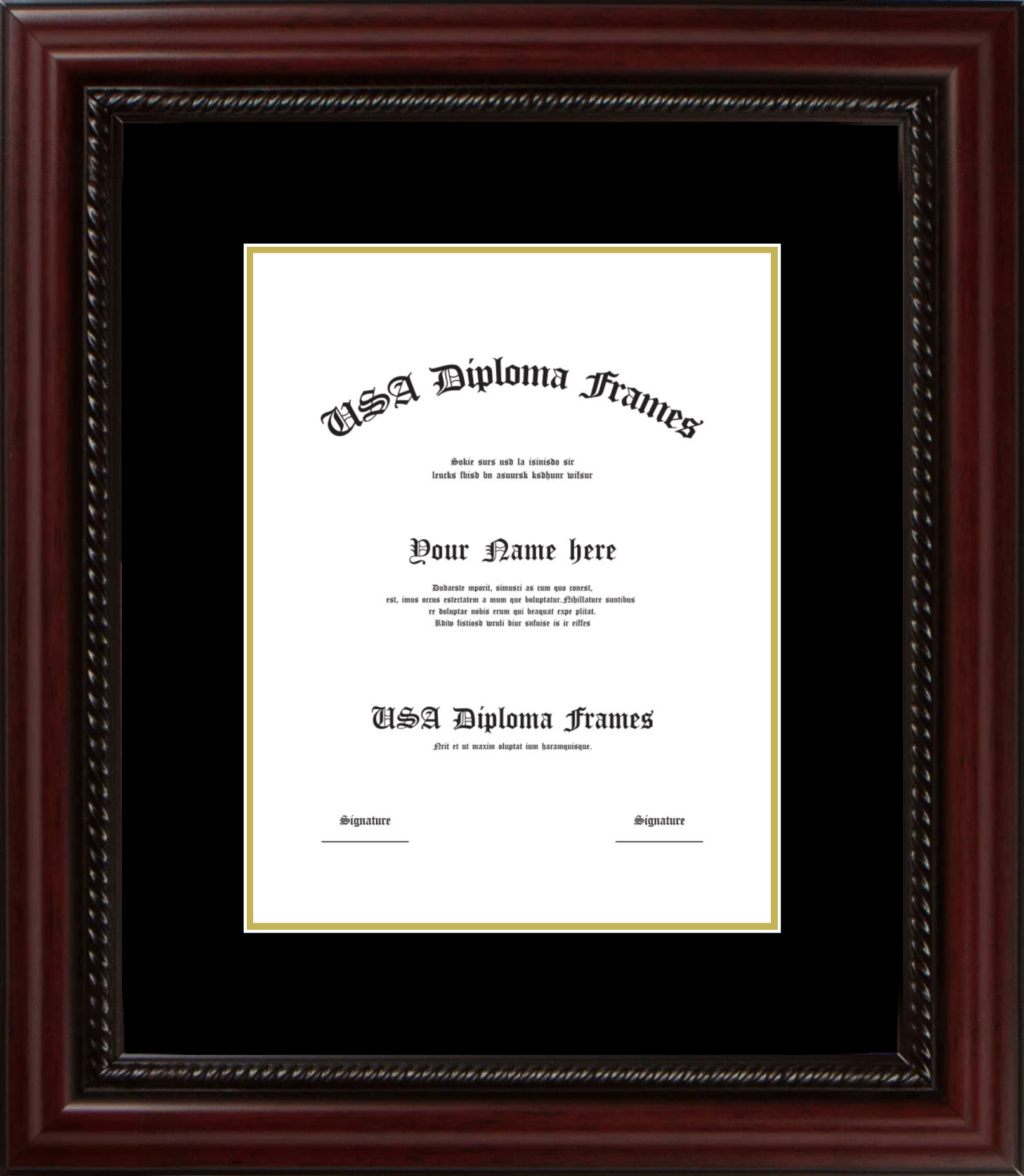 Vertical Diploma Frame – Executive Cherry Rope – Black and Gold Mat – 11 x 8.5 Diploma