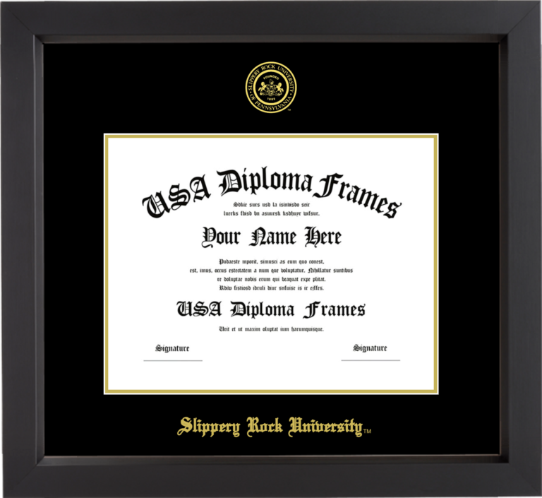 Slippery Rock University Diploma Frame – Black Matte – Black and Gold Mat