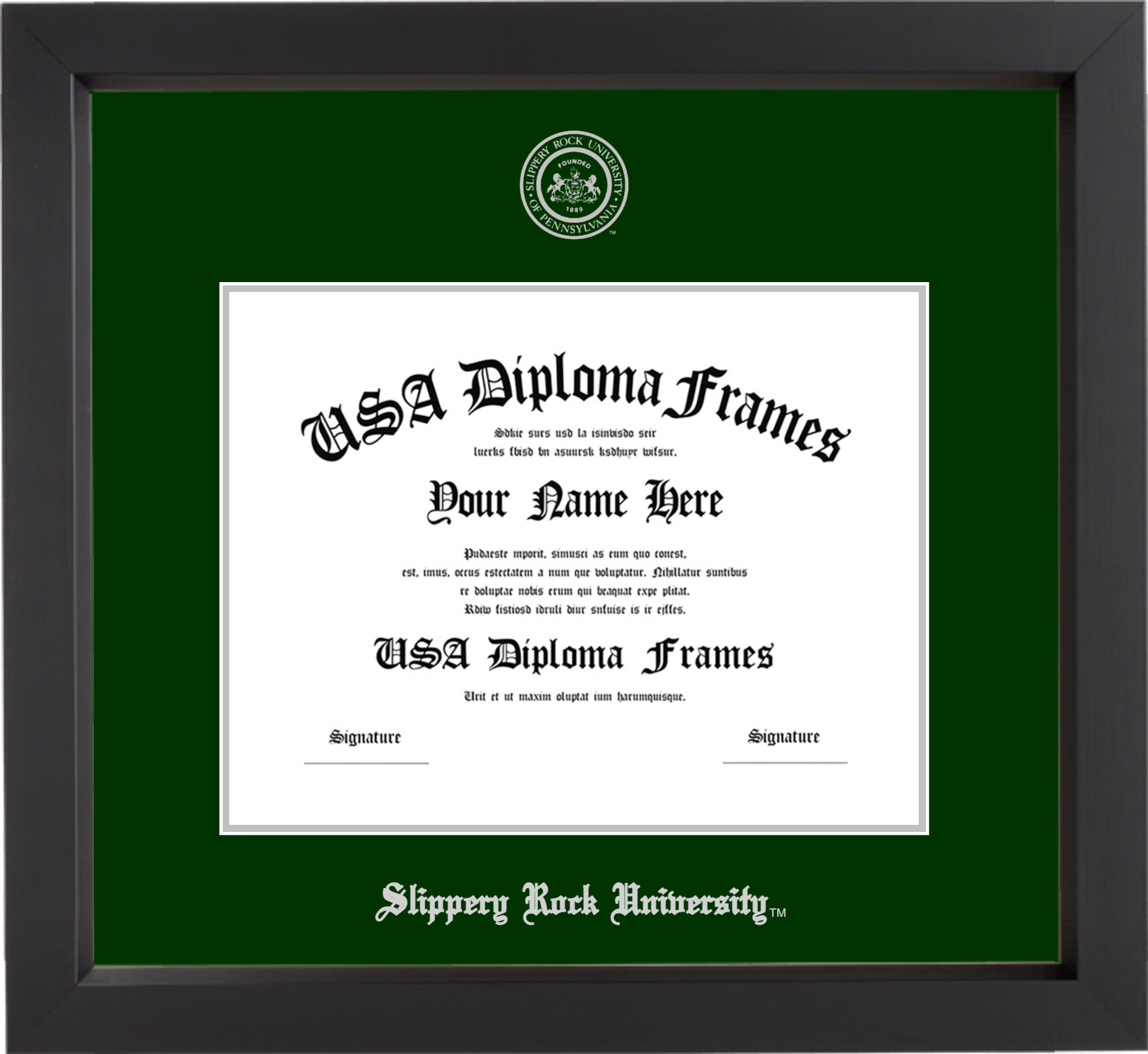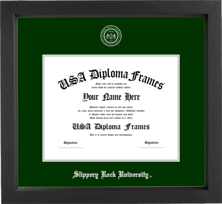 Want to explore more styles? Browse our full range of diploma frame layouts, or visit the Slippery Rock University to view options available for your school. Looking for a fully personalized design? Try our custom Frame Builder and create a frame that’s uniquely yours.