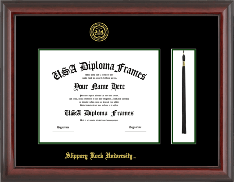 Want to explore more styles? Browse our full range of diploma frame layouts, or visit the Slippery Rock University to view options available for your school. Looking for a fully personalized design? Try our custom Frame Builder and create a frame that’s uniquely yours.