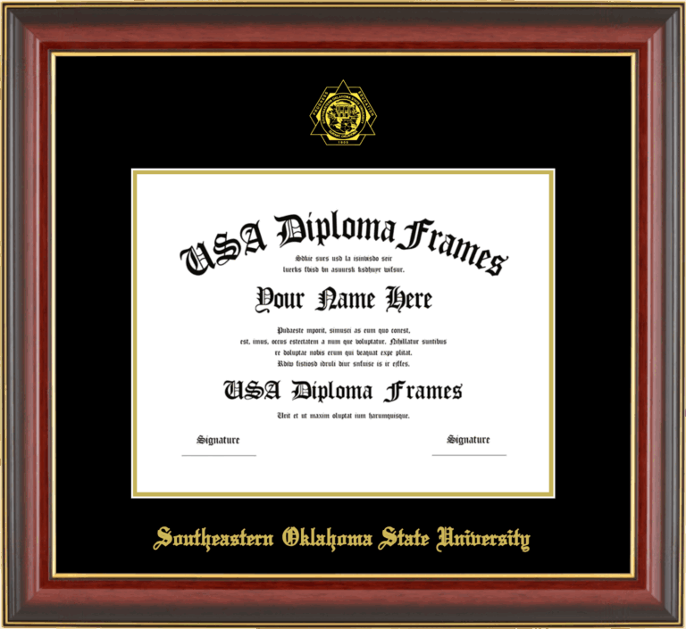 Want to explore more styles? Browse our full range of diploma frame layouts, or visit the Southeastern Oklahoma State University to view options available for your school. Looking for a fully personalized design? Try our custom Frame Builder and create a frame that’s uniquely yours.