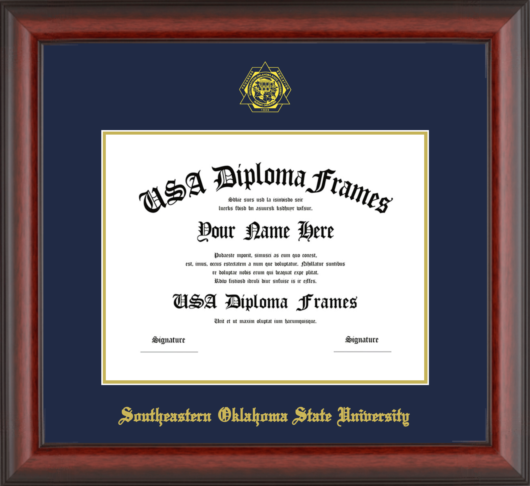 Southeastern Oklahoma State University – Single Horizontal Document ( Diploma ) – Cherry Mahogany Matte – Navy Mat – Gold Accent Mat – With Seal(University Seal Gold) – With Gold Embossing (Southeastern Oklahoma State University)
