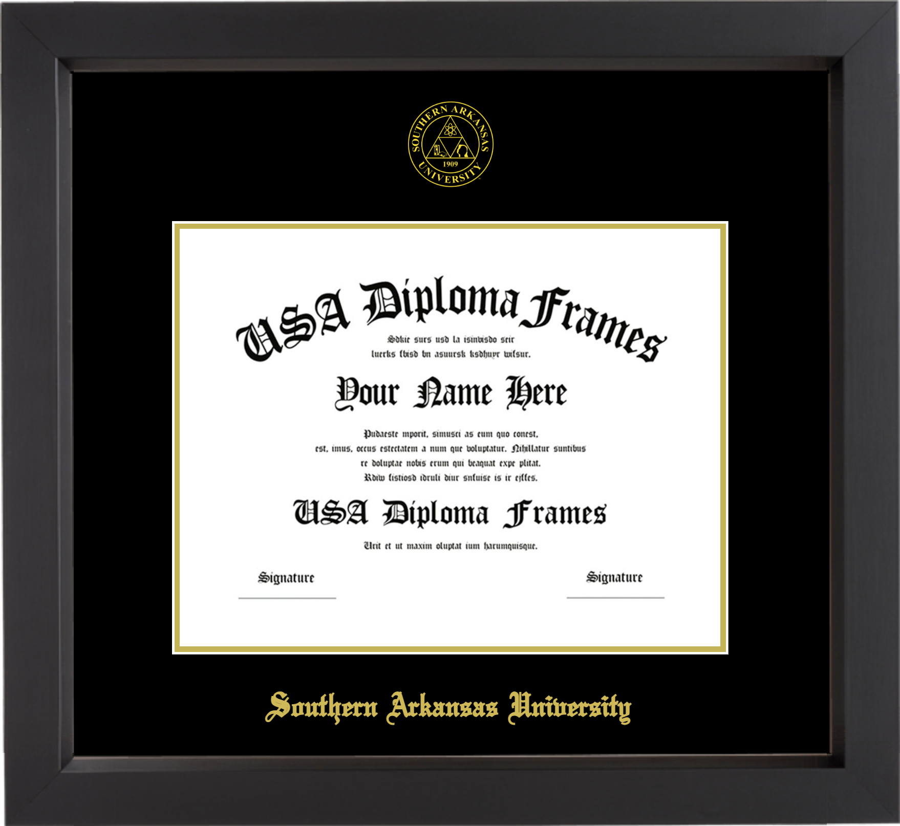 Want to explore more styles? Browse our full range of diploma frame layouts, or visit the Southern Arkansas University to view options available for your school. Looking for a fully personalized design? Try our custom Frame Builder and create a frame that’s uniquely yours.