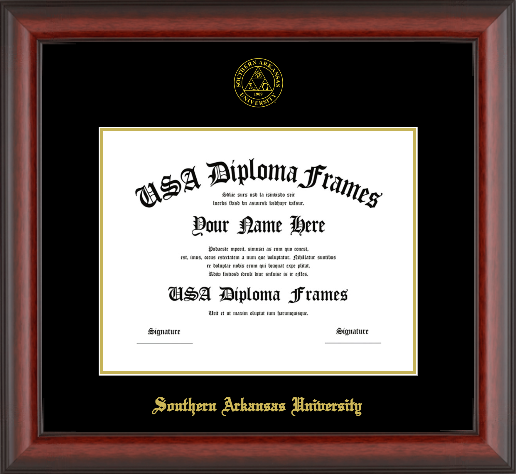 Southern Arkansas University Diploma Frame – Cherry Mahogany Matte – Black and Gold Mat