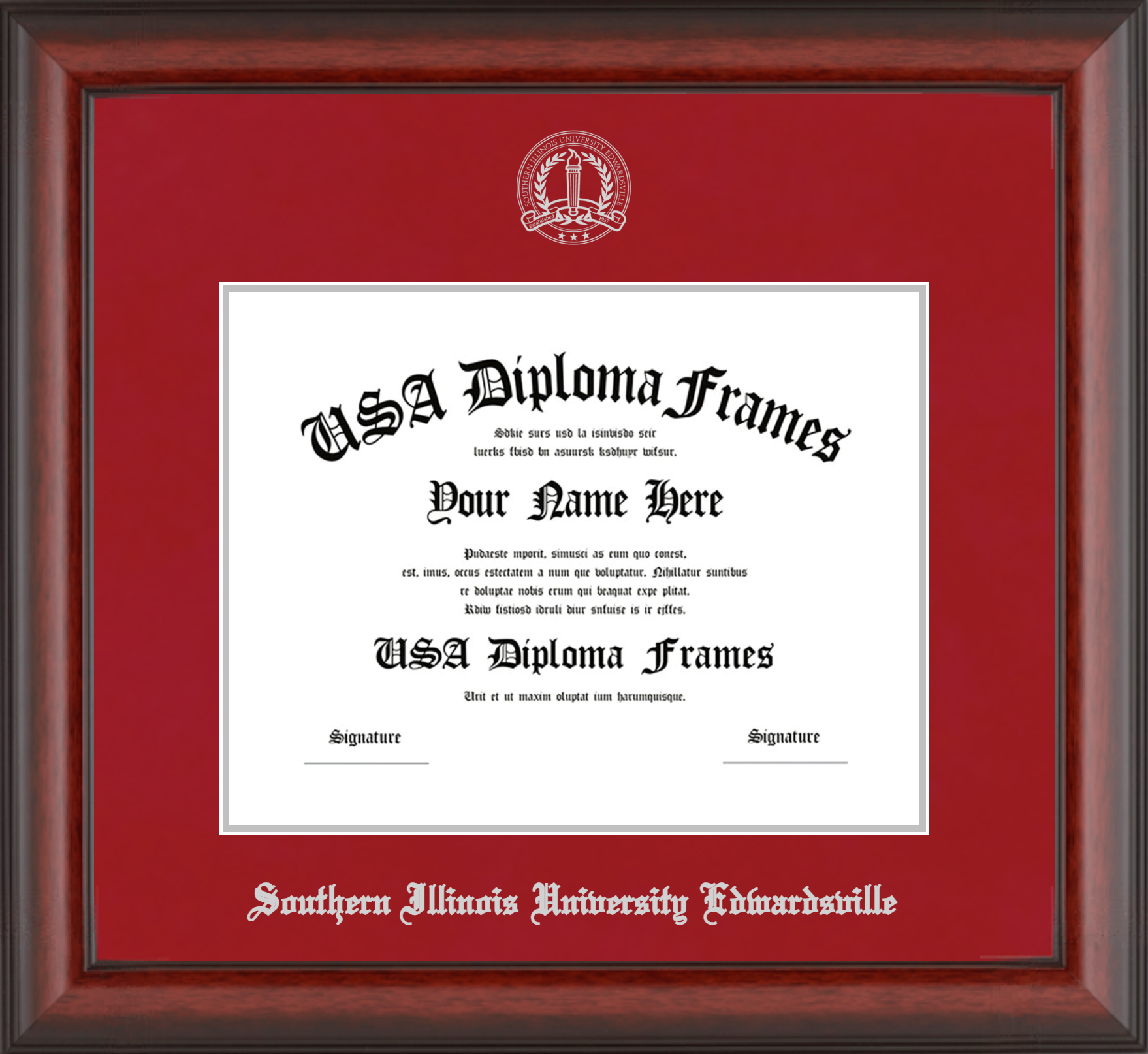 Southern Illinois University Edwardsville – Single Horizontal Document ( Diploma ) – Cherry Mahogany Matte – Crimson Mat – Silver Accent Mat – With Seal(University Seal Silver) – With Silver Embossing (Southern Illinois University Edwardsville)