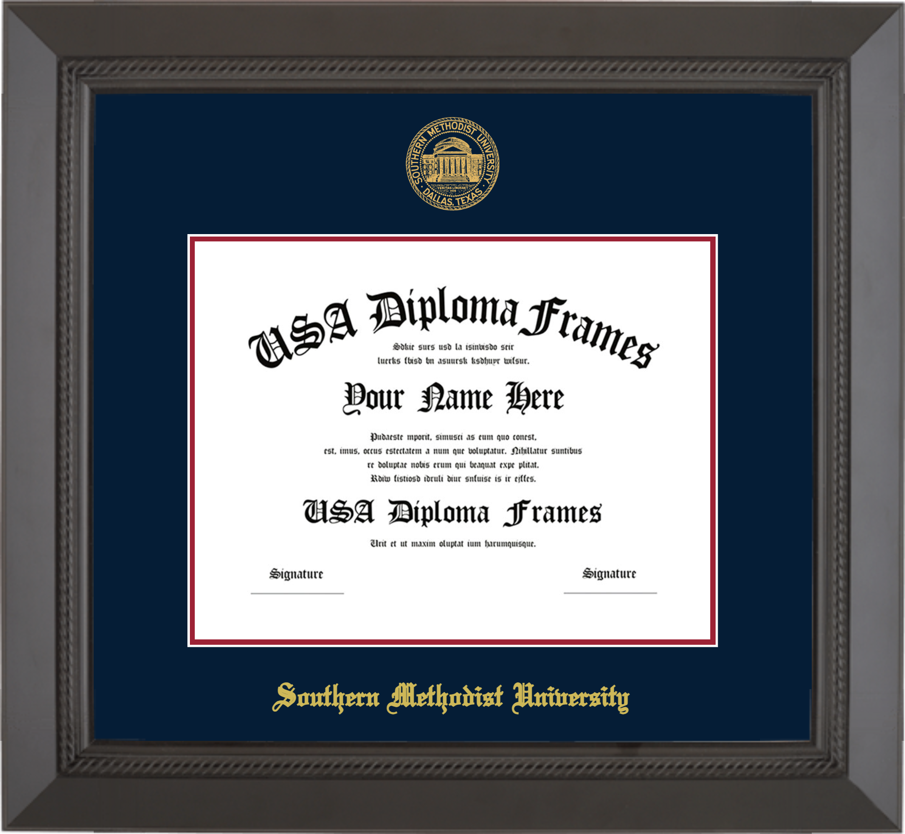 Southern Methodist University Diploma Frame – SMU Bachelors 8.5×11 – Black Rope – Navy and Crimson Mat