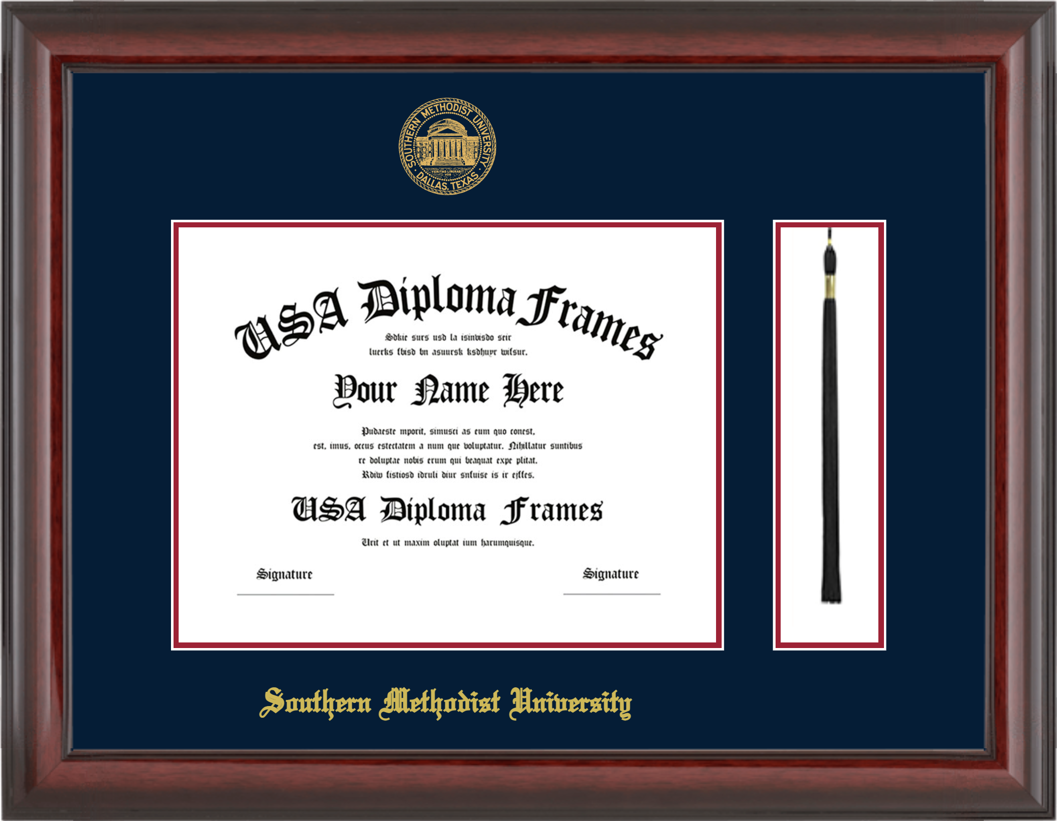 Southern Methodist University Diploma Frame with Tassel – Bachelors 8.5×11 – Cherry Mahogany Glossy – Navy and Crimson Mat