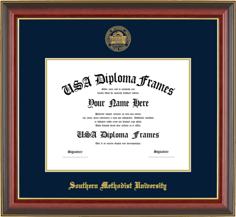 Want to explore more styles? Browse our full range of diploma frame layouts, or visit the Southern Methodist University to view options available for your school. Looking for a fully personalized design? Try our custom Frame Builder and create a frame that’s uniquely yours.