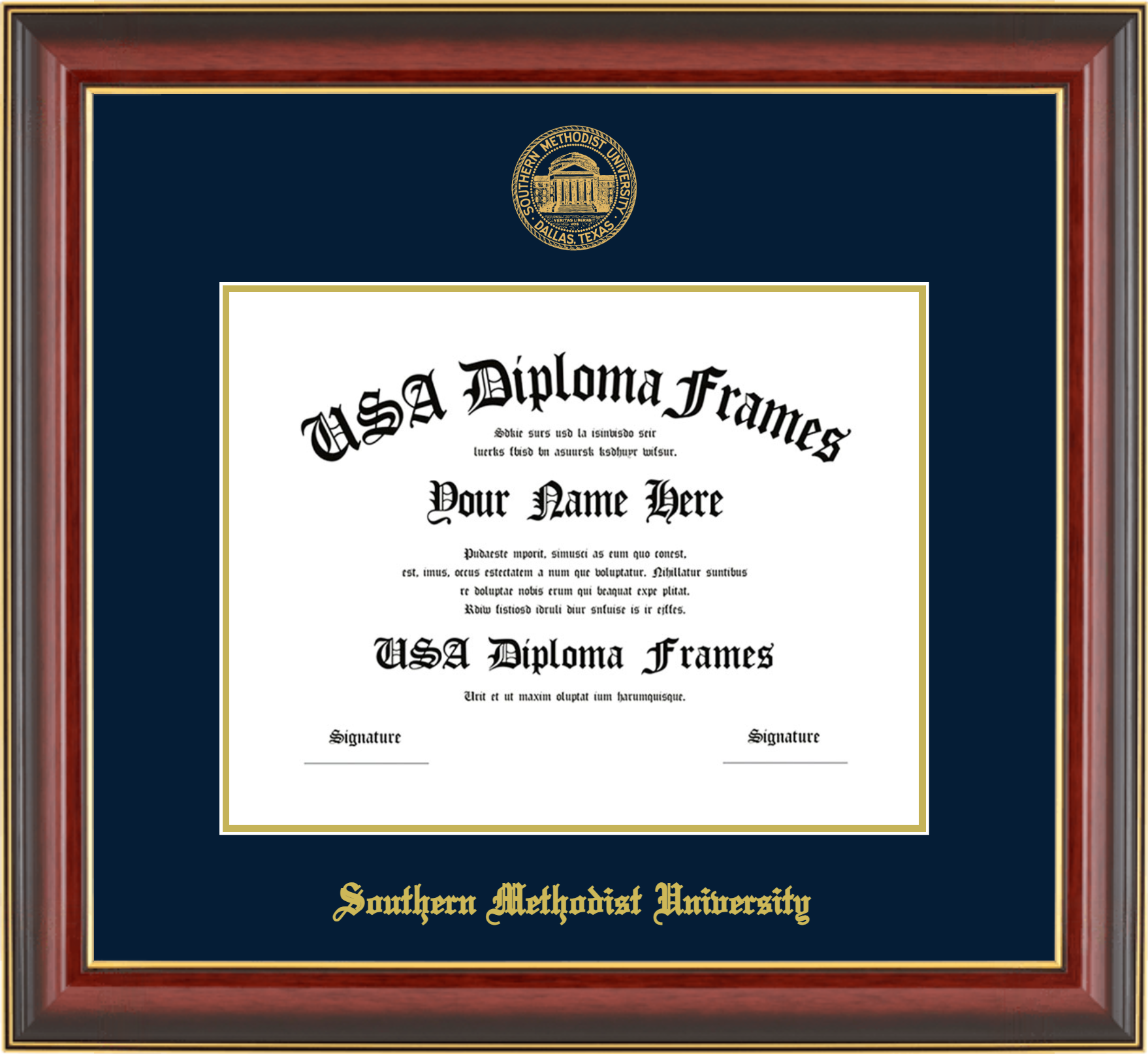 Southern Methodist University Diploma Frame – SMU Bachelors 8.5×11 – Cherry Mahogany Gold Trim Glossy – Navy and Gold Mat