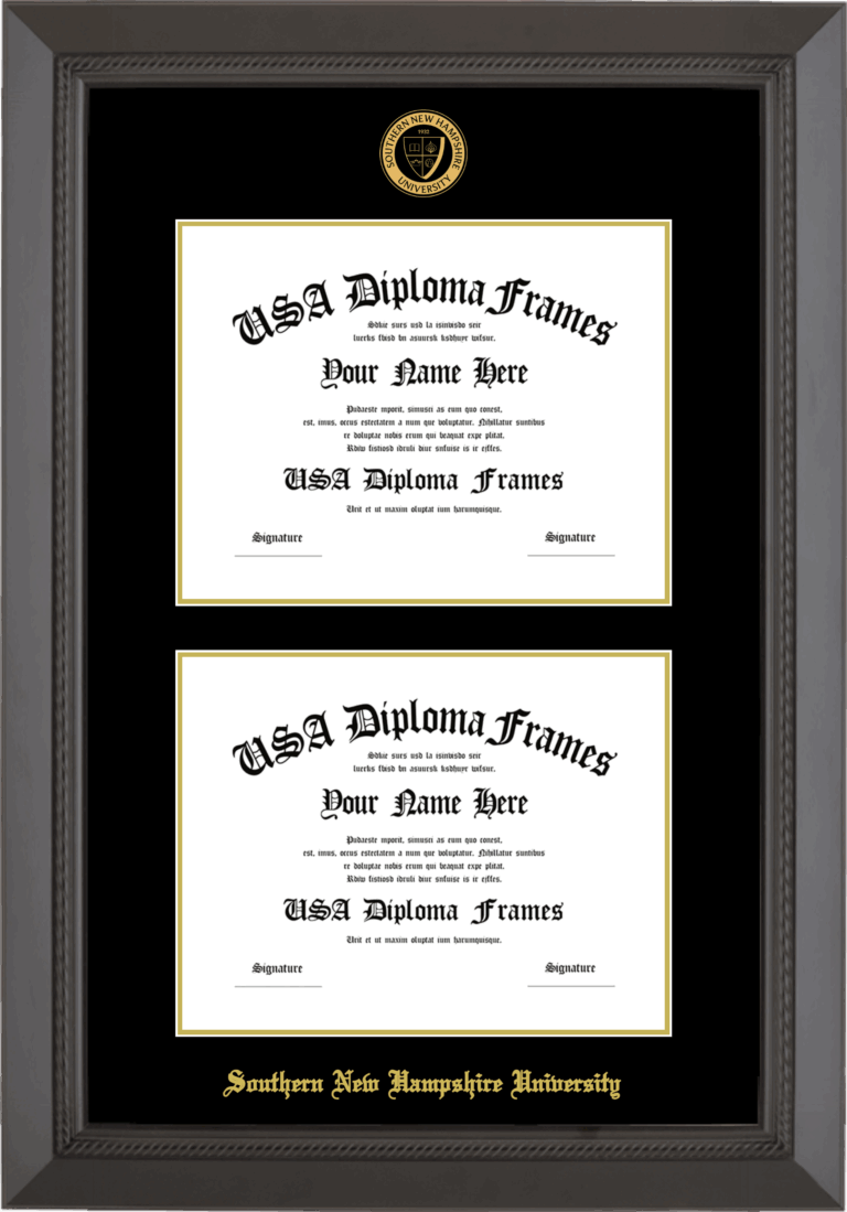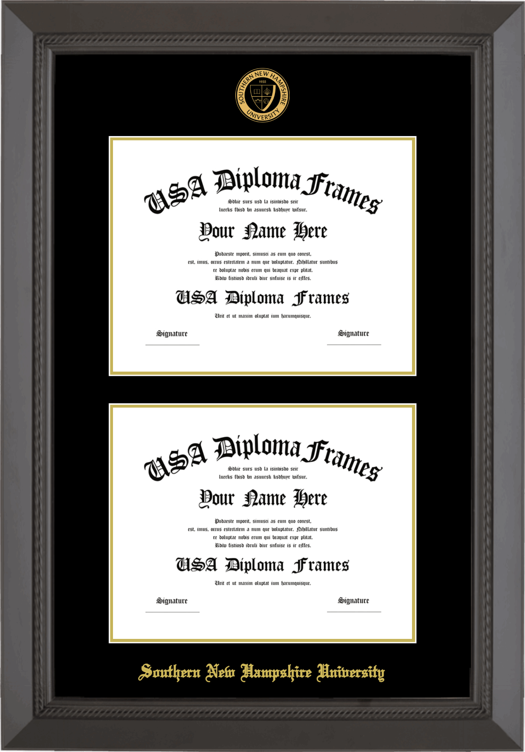 Southern New Hampshire University Double Diploma Frame – Double Document – Black Rope – Black and Gold Mat