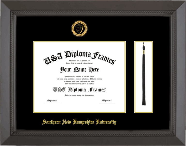 Southern New Hampshire University Diploma Frame with Tassel – Black Rope – Black and Gold Mat