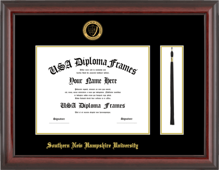 Southern New Hampshire University Diploma Frame with Tassel – Cherry Mahogany Glossy – Black and Gold Mat
