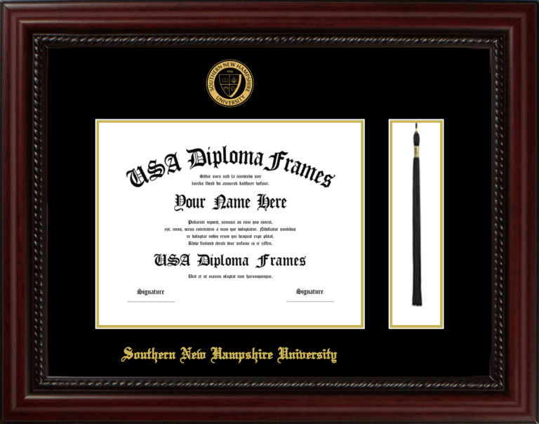 Southern New Hampshire University Diploma Frame with Tassel – Executive Cherry Rope – Black and Gold Mat