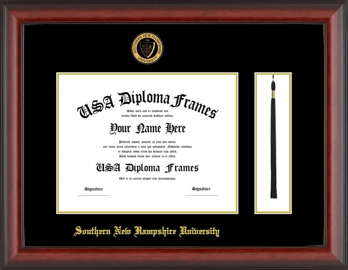 Southern New Hampshire University – Single Horizontal Document ( Diploma ) – Cherry Mahogany Matte – Black Mat – Gold Accent Mat – With Tassel(Default) – With Seal(University Seal Gold) – With Gold Embossing (Southern New Hampshire University)