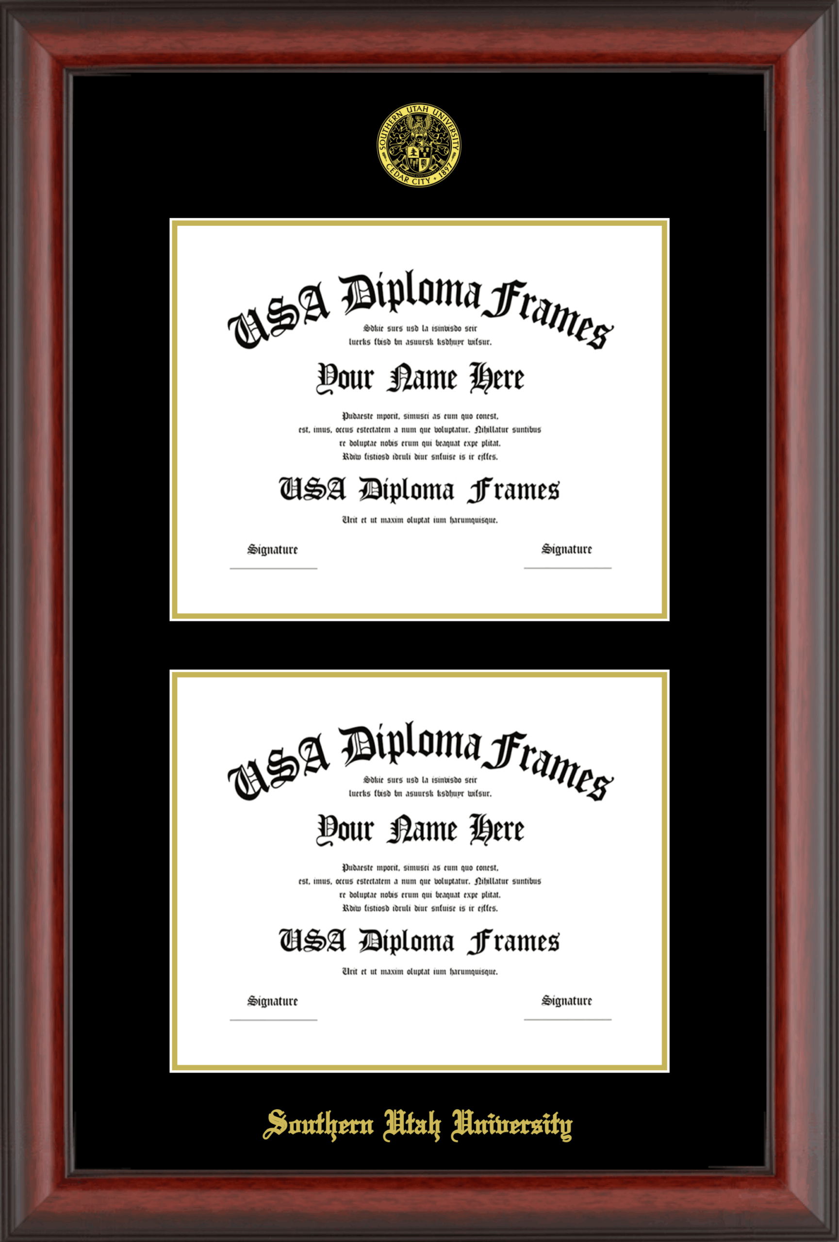 Southern Utah University Double Diploma Frame – Double Document – Cherry Mahogany Matte – Black and Gold Mat