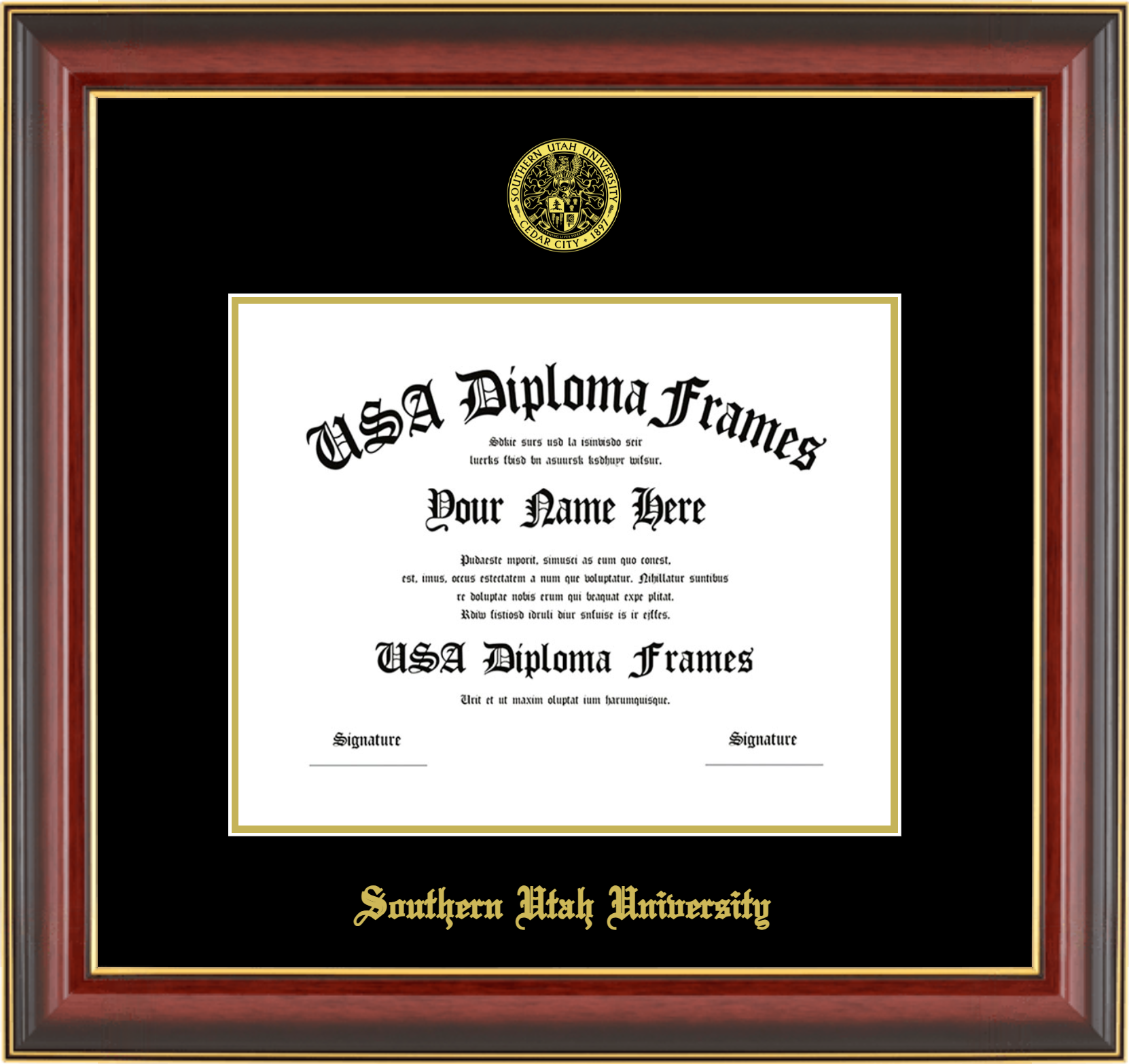 Southern Utah University Diploma Frame – Cherry Mahogany Gold Trim Glossy – Black and Gold Mat