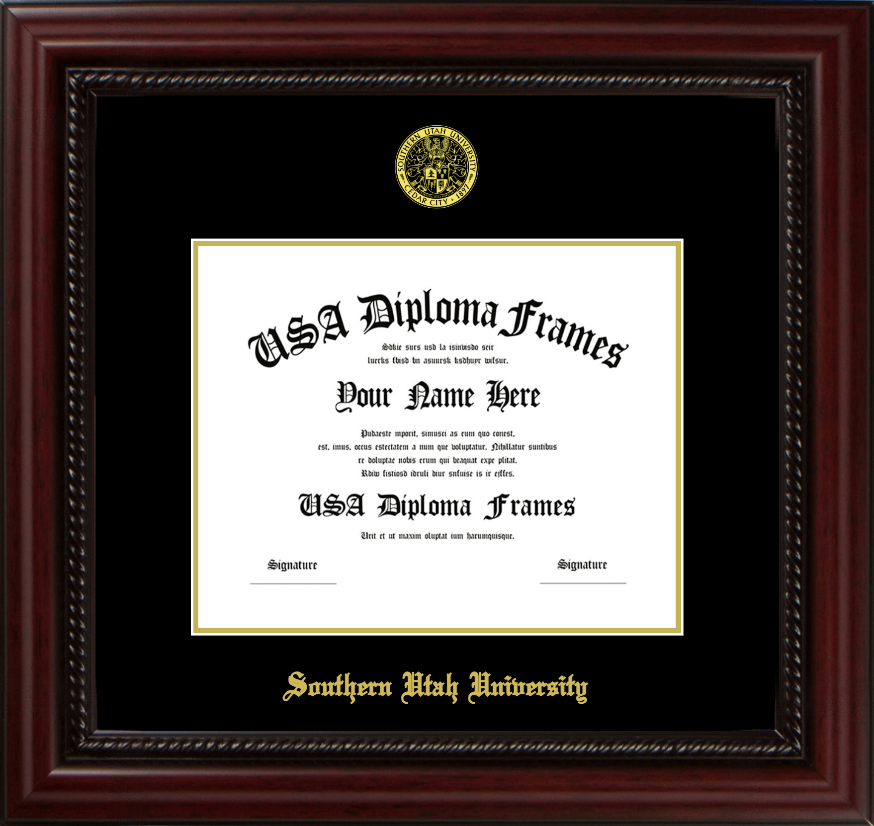 Southern Utah University Diploma Frame – Executive Cherry Rope – Black and Gold Mat