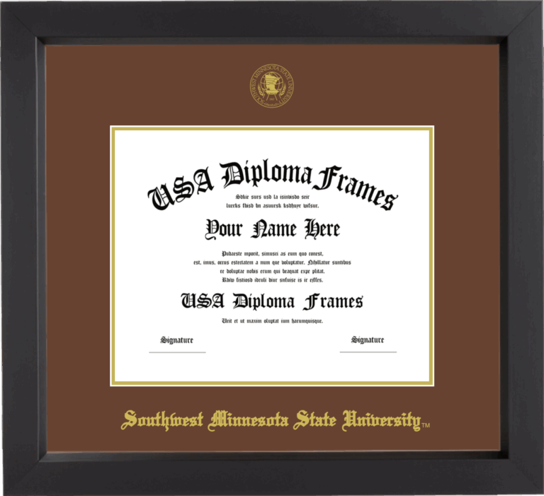 Southwest Minnesota State University Diploma Frame – Black Matte – Brown and Gold Mat