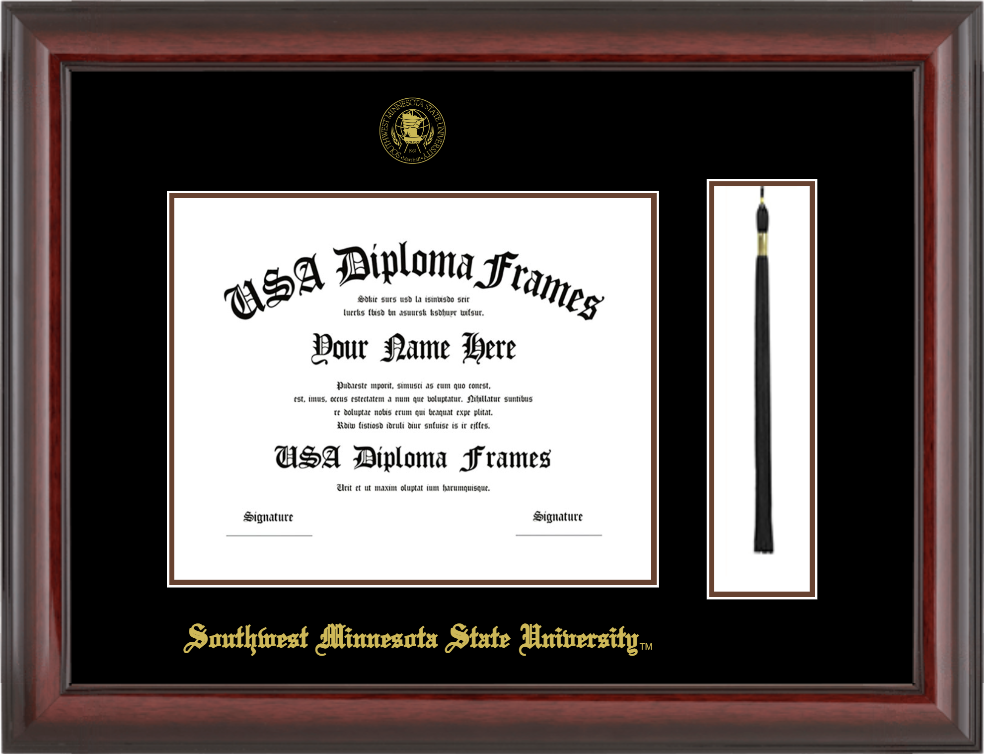 Southwest Minnesota State University Diploma Frame with Tassel – Cherry Mahogany Glossy – Black and Brown Mat