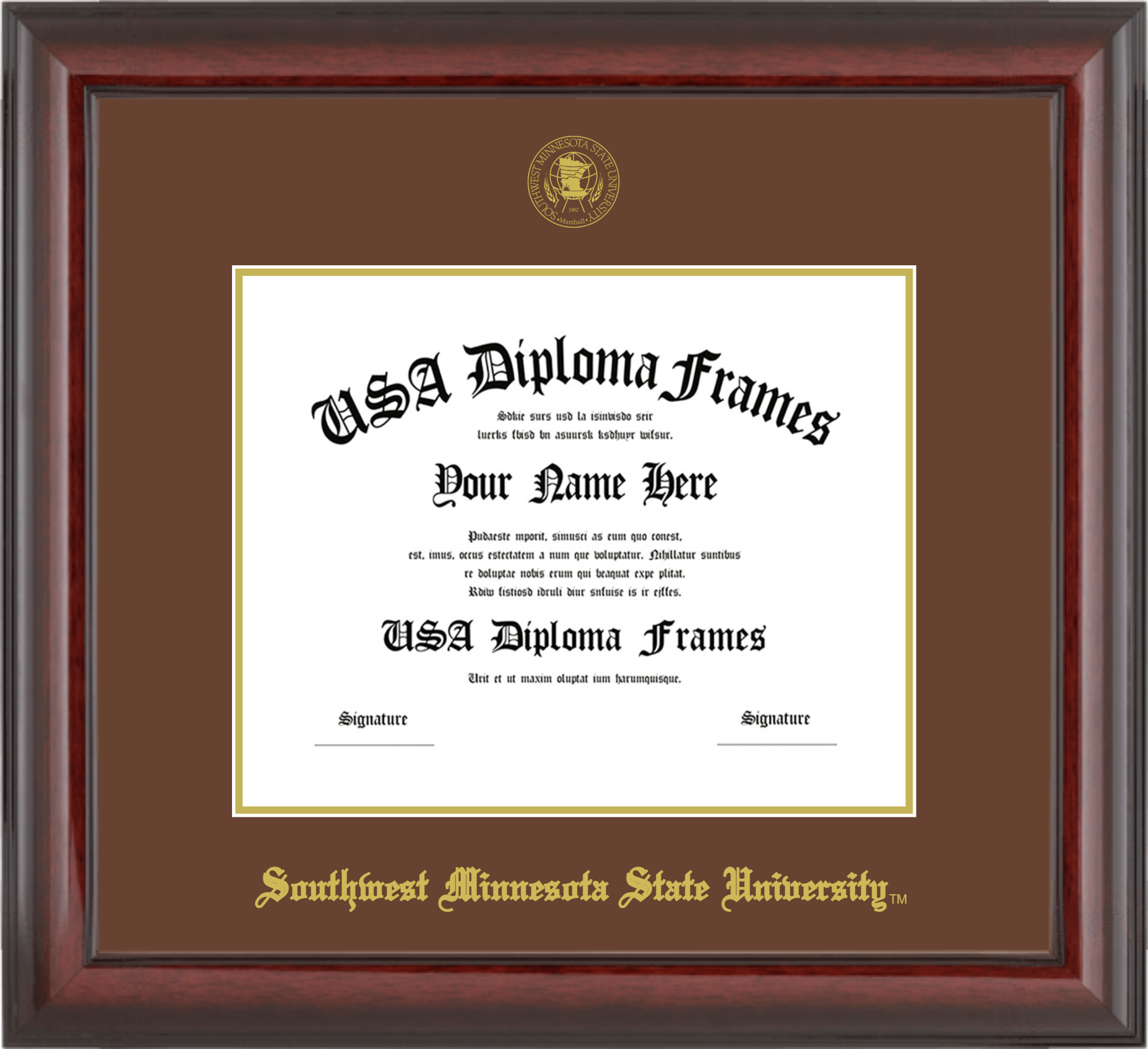 Southwest Minnesota State University – Single Horizontal Document ( Diploma ) – Cherry Mahogany Glossy – Brown Mat – Gold Accent Mat – With Seal(University Seal Gold) – With Gold Embossing (Southwest Minnesota State University)