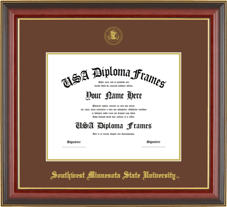 Want to explore more styles? Browse our full range of diploma frame layouts, or visit the Southwest Minnesota State University to view options available for your school. Looking for a fully personalized design? Try our custom Frame Builder and create a frame that’s uniquely yours.