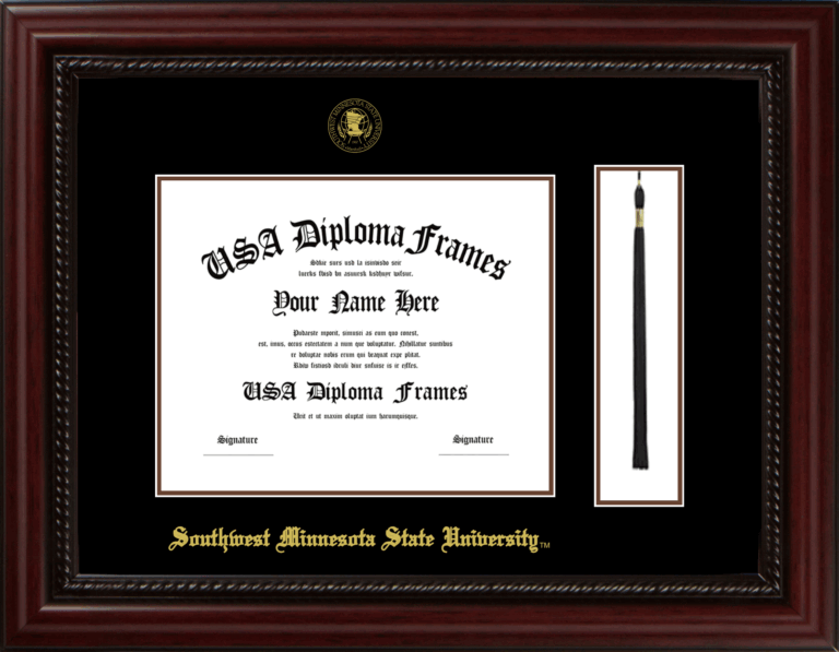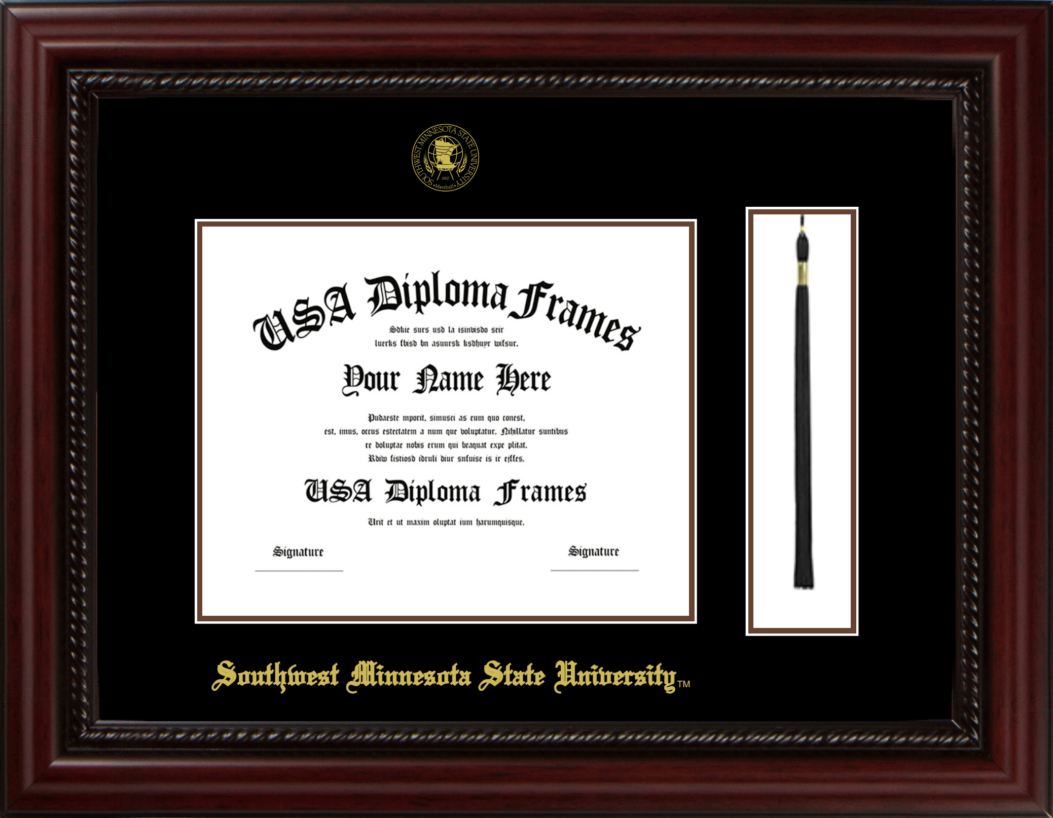 Southwest Minnesota State University Diploma Frame with Tassel – Executive Cherry Rope – Black and Brown Mat
