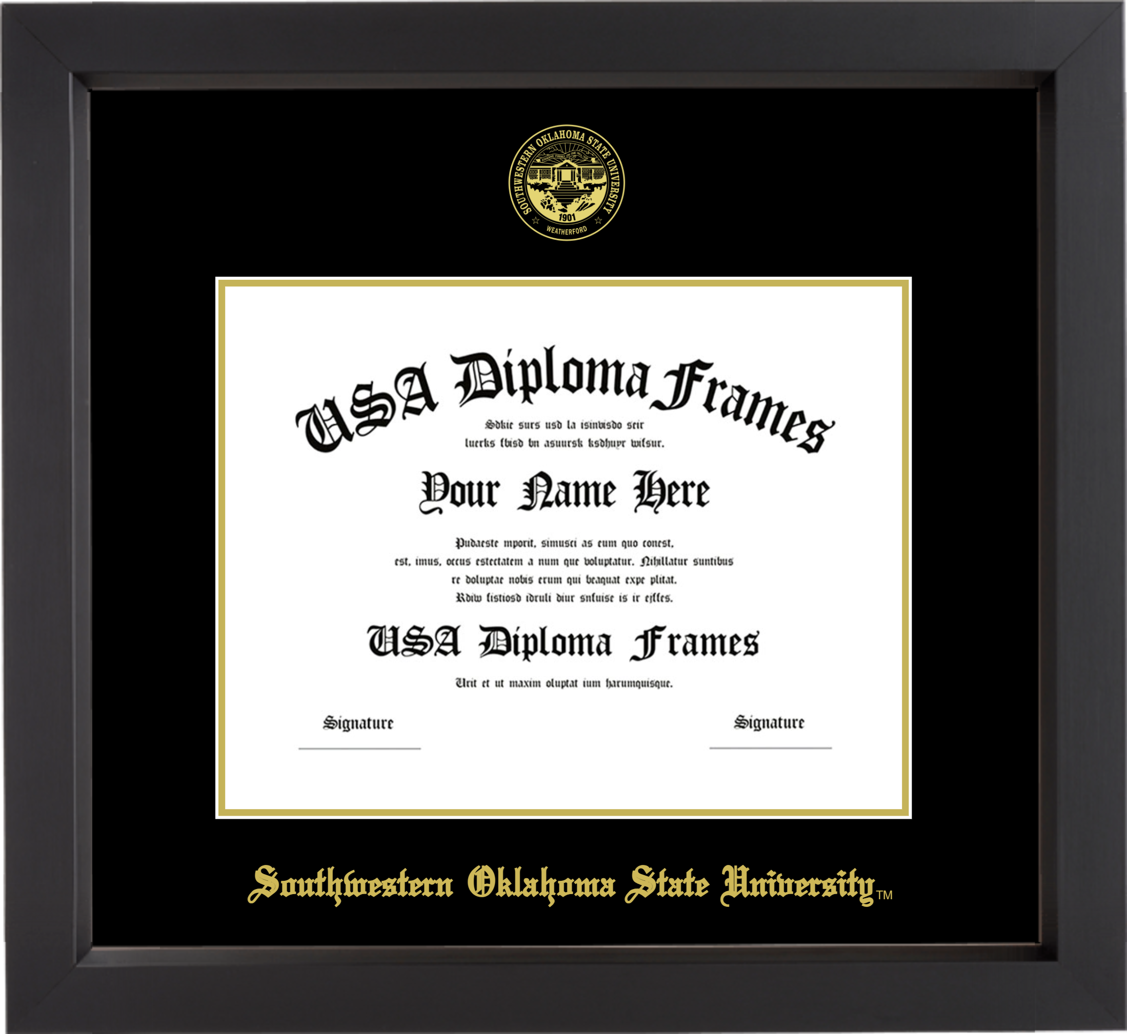 Southwestern Oklahoma State University Diploma Frame – Black Matte – Black and Gold Mat
