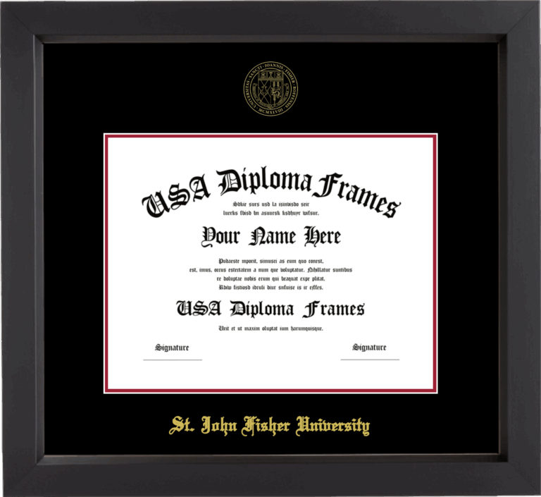 St. John Fisher University Diploma Frame – Black Matte – Black and Crimson Mat