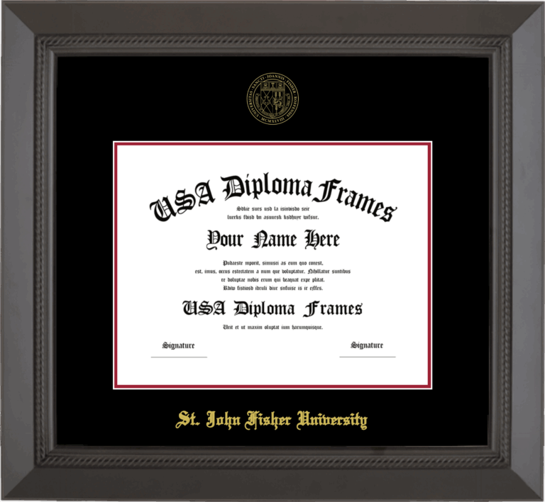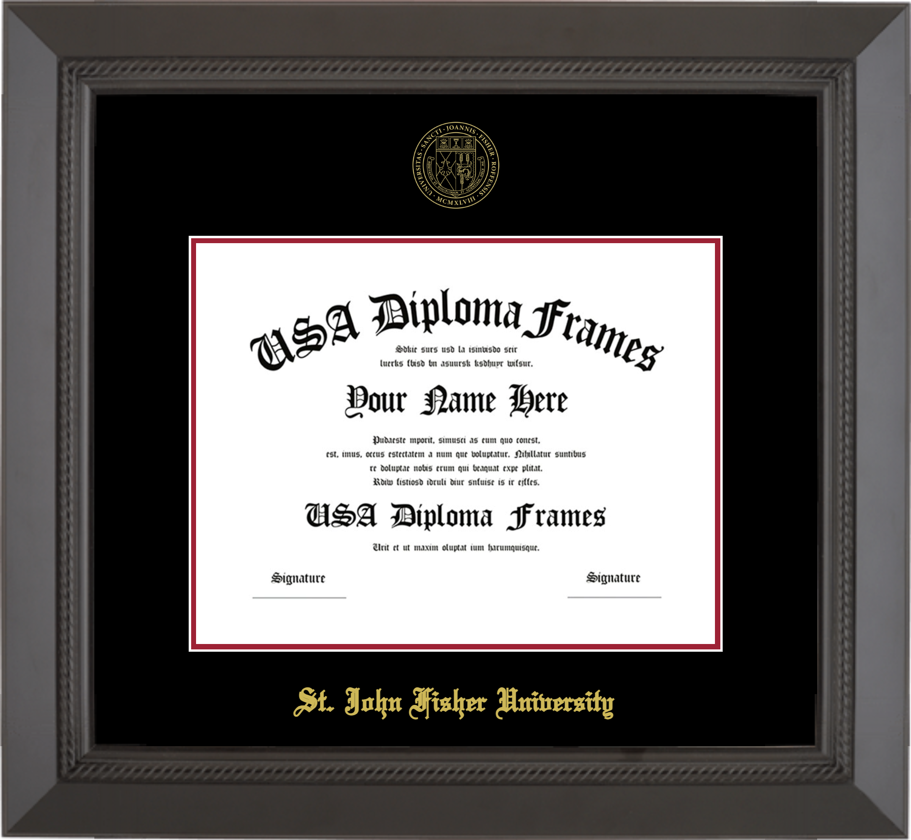 St. John Fisher University Diploma Frame – Black Rope – Black and Crimson Mat