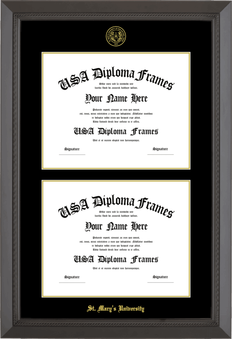 St. Mary’s University (TX) Double Diploma Frame – Double Document – Black Rope – Black and Gold Mat