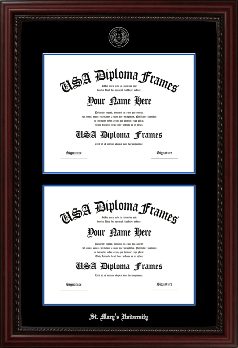Want to explore more styles? Browse our full range of diploma frame layouts, or visit the St. Mary's University (TX) to view options available for your school. Looking for a fully personalized design? Try our custom Frame Builder and create a frame that’s uniquely yours.