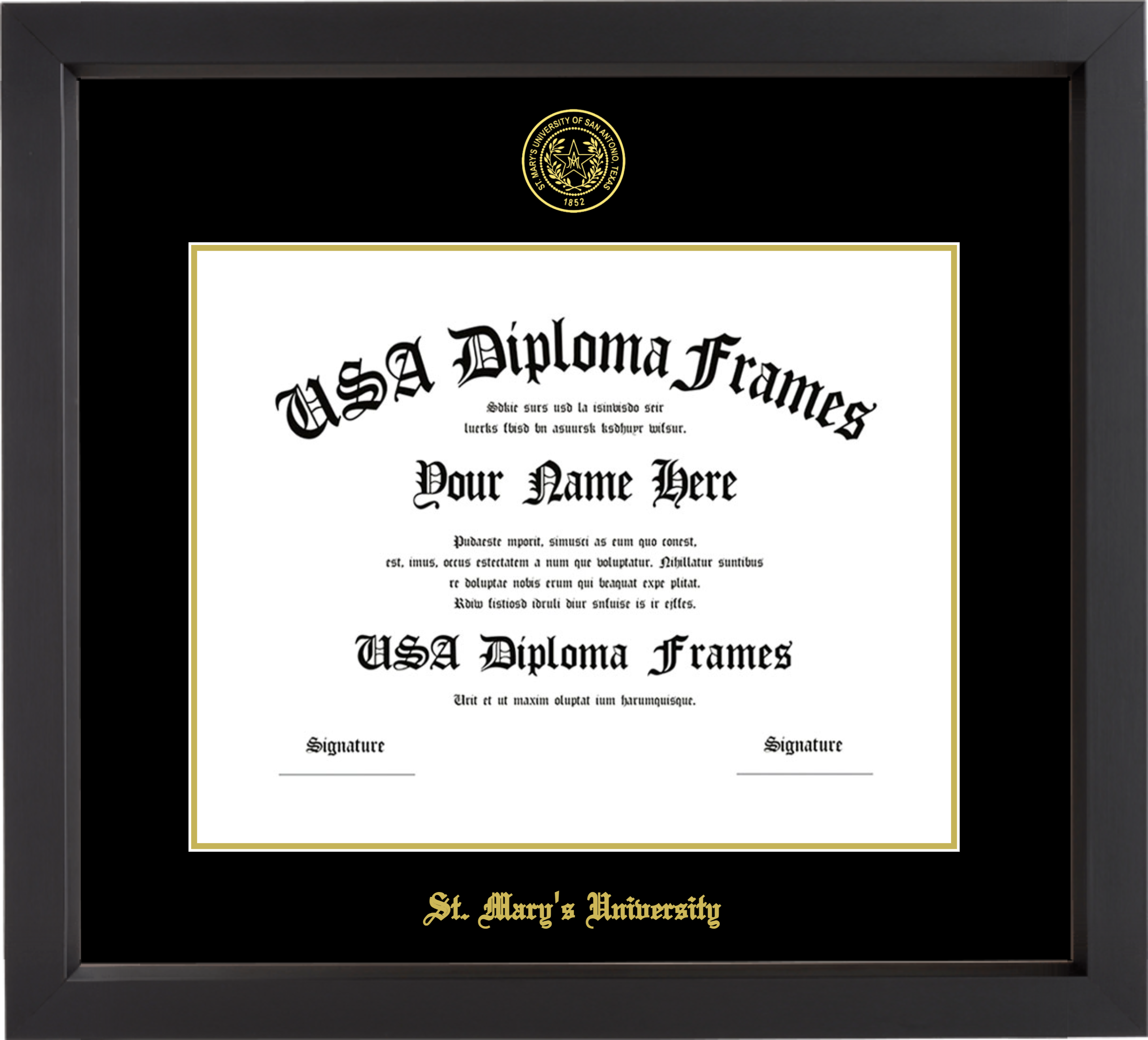 St. Mary’s University (TX) Diploma Frame – Black Matte – Black and Gold Mat