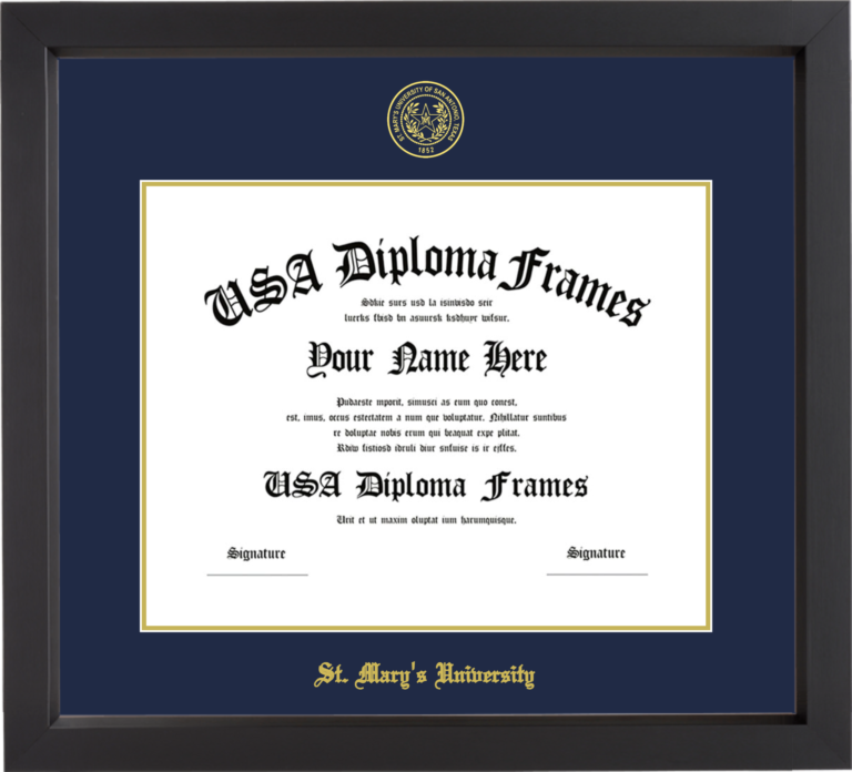 Want to explore more styles? Browse our full range of diploma frame layouts, or visit the St. Mary's University (TX) to view options available for your school. Looking for a fully personalized design? Try our custom Frame Builder and create a frame that’s uniquely yours.