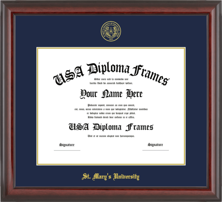 Want to explore more styles? Browse our full range of diploma frame layouts, or visit the St. Mary's University (TX) to view options available for your school. Looking for a fully personalized design? Try our custom Frame Builder and create a frame that’s uniquely yours.