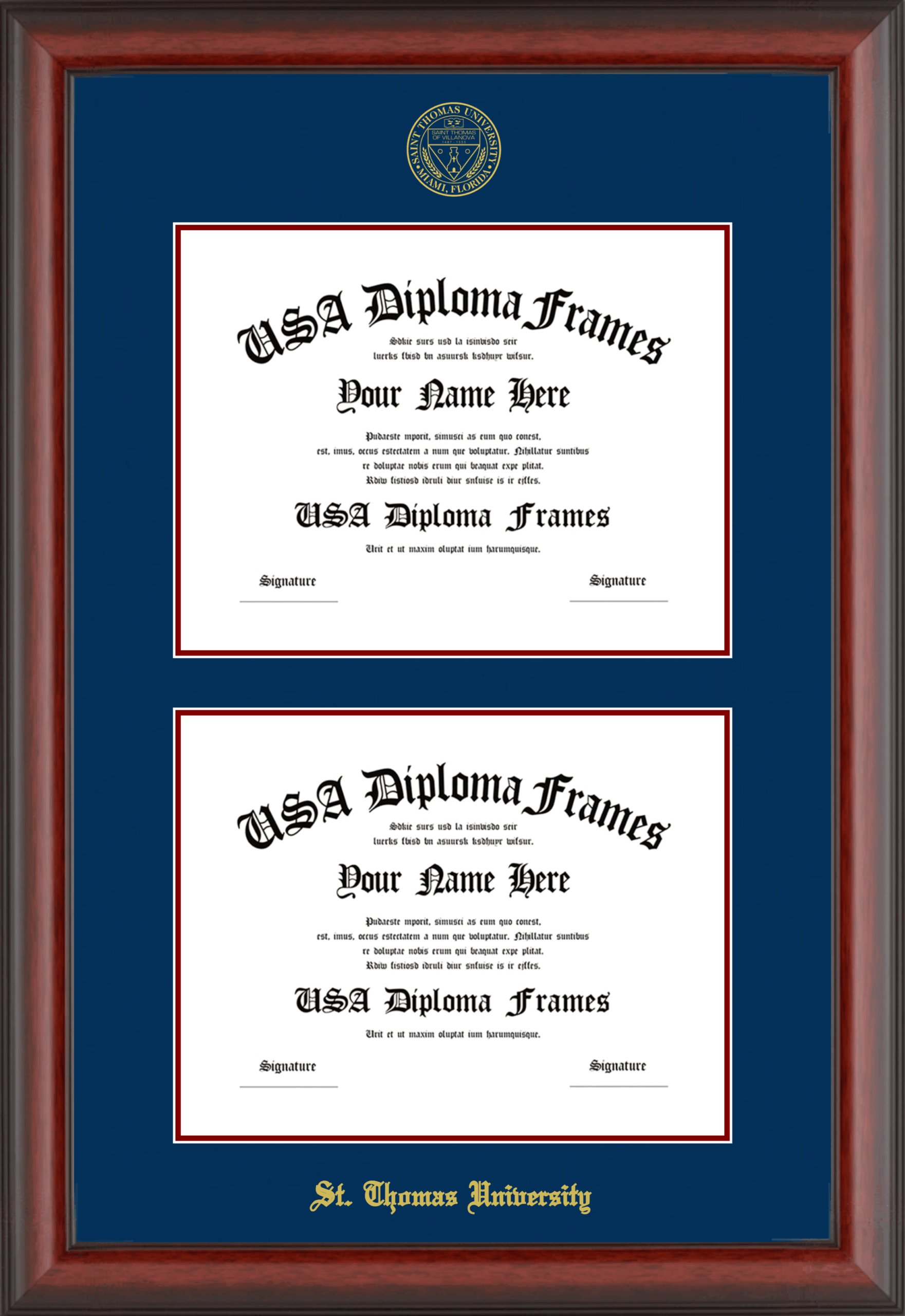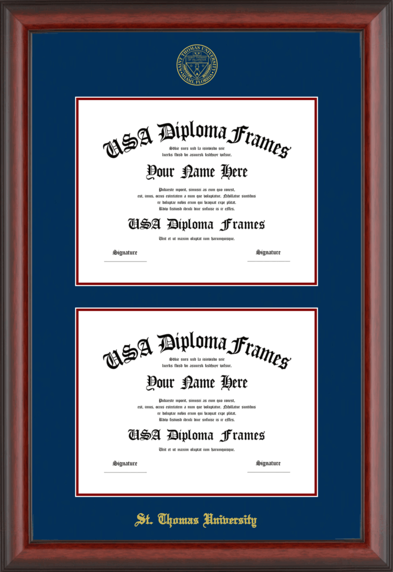 St. Thomas University Double Diploma Frame – Double Document – Cherry Mahogany Matte – Navy and Maroon Mat